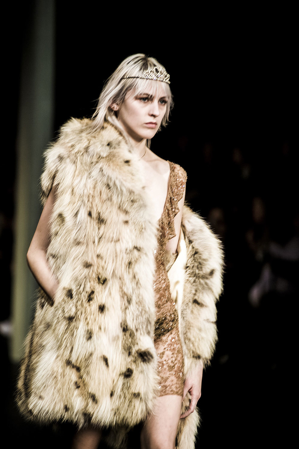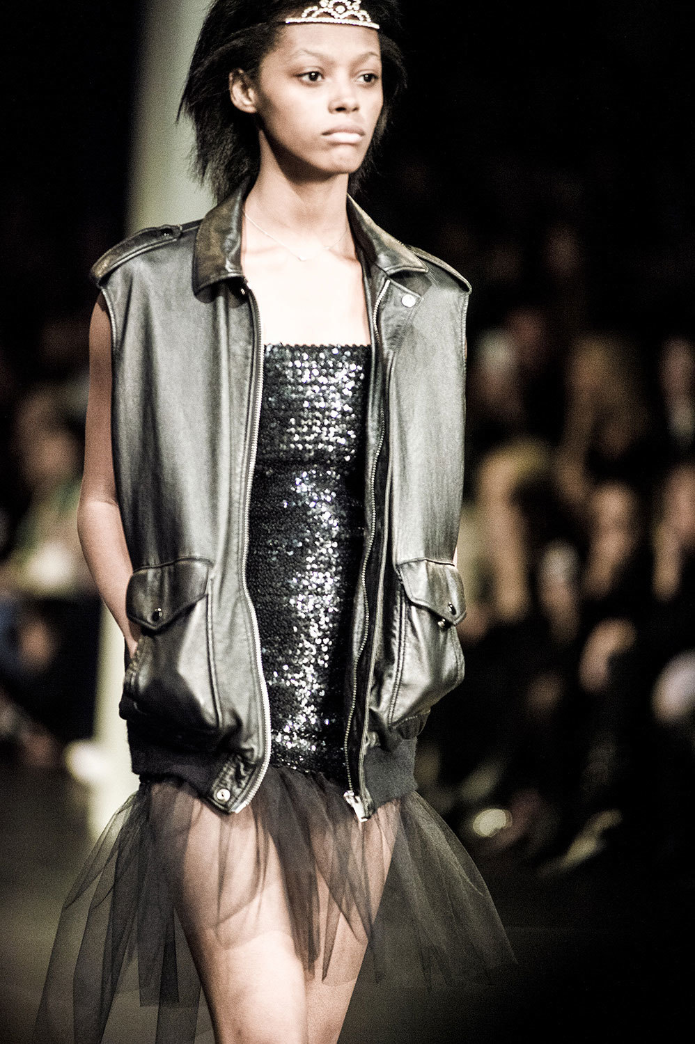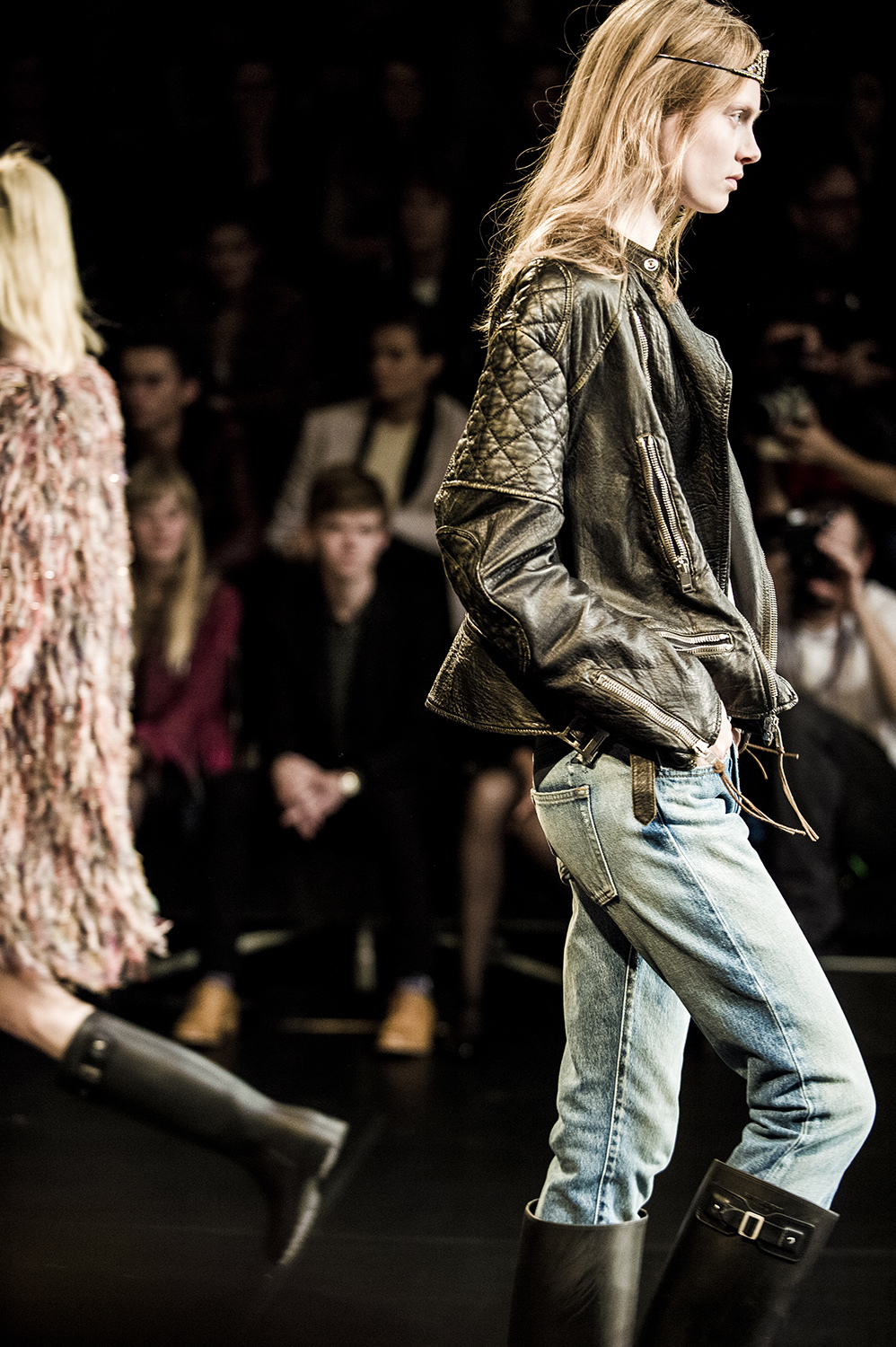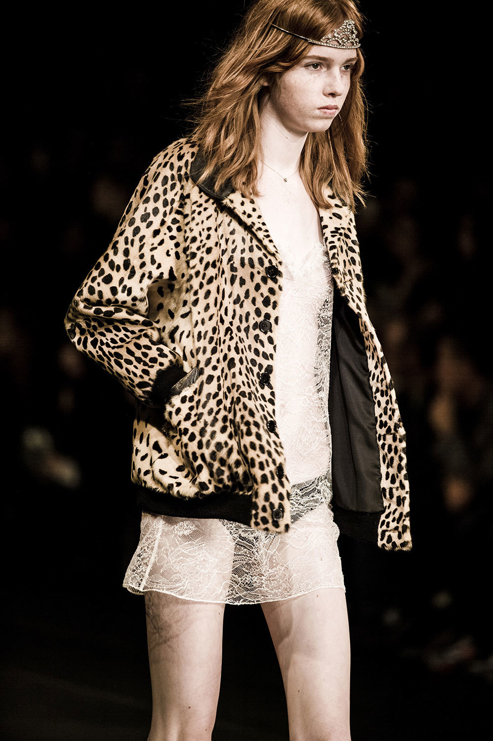 The queens of night came nip-slipping out in tiaras, rainboots, and evening dresses, as well as classic Hedi staples of biker jackets and animal prints.