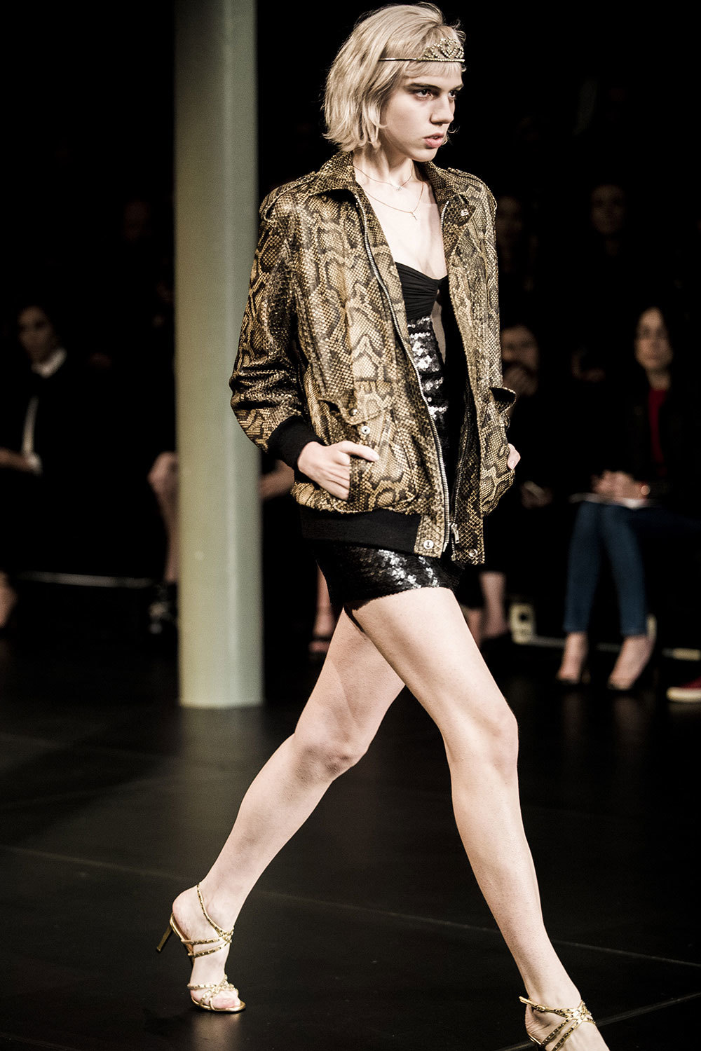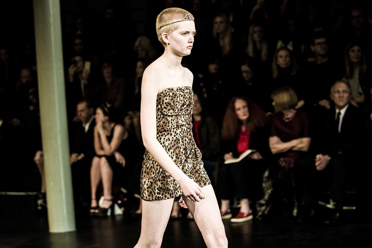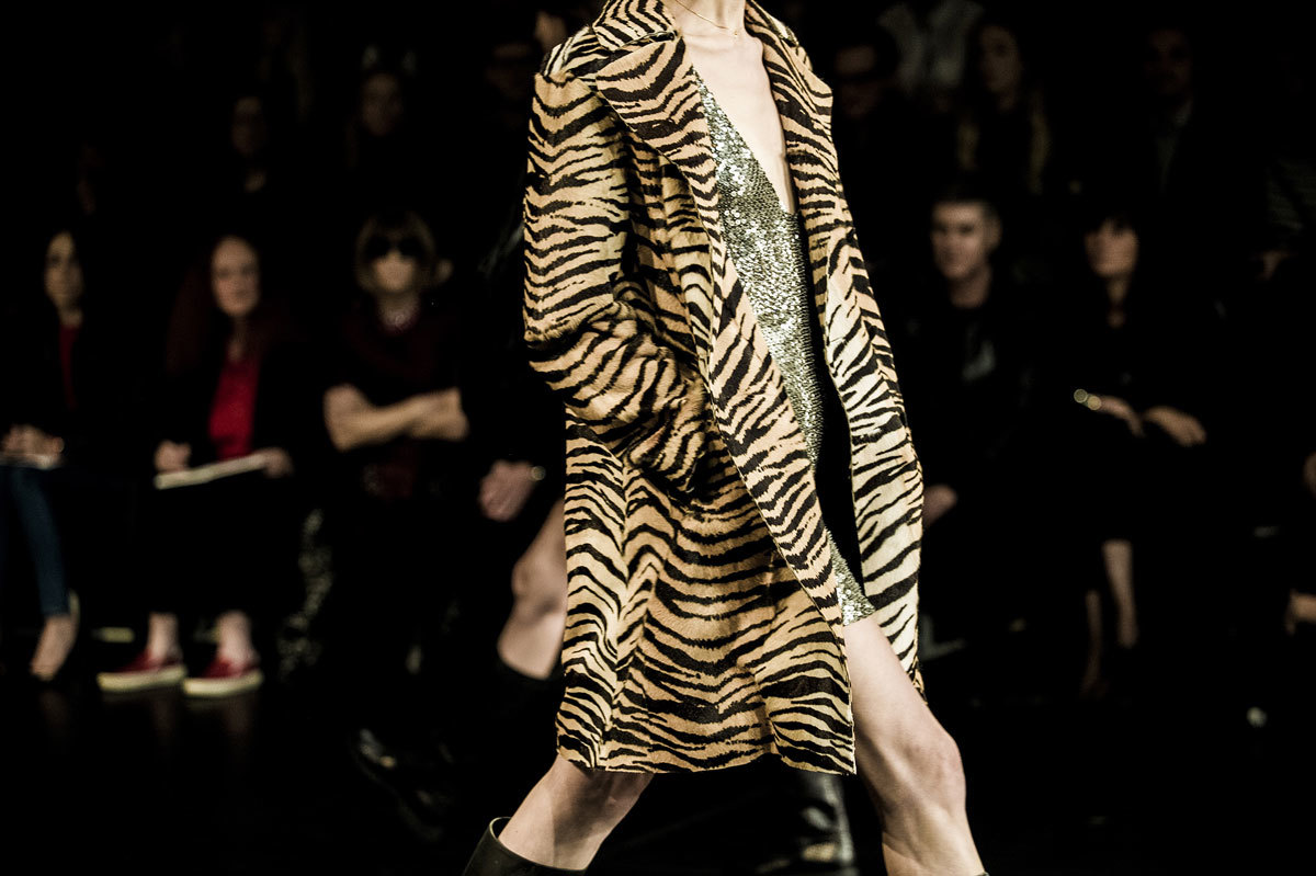 The queens of night came nip-slipping out in tiaras, rainboots, and evening dresses, as well as classic Hedi staples of biker jackets and animal prints.