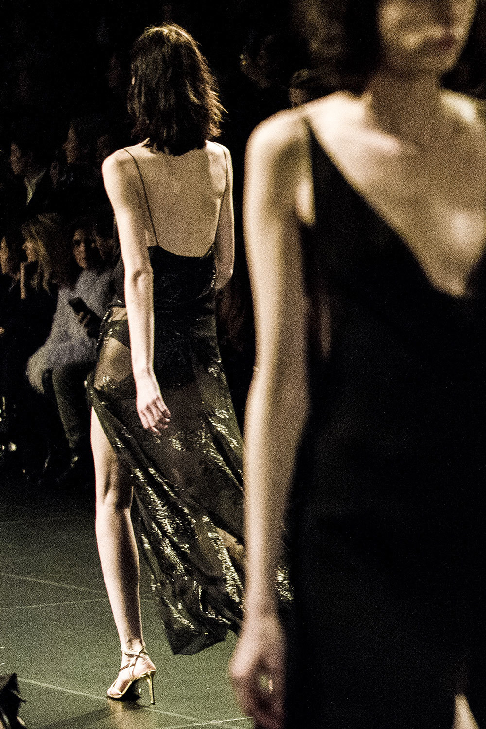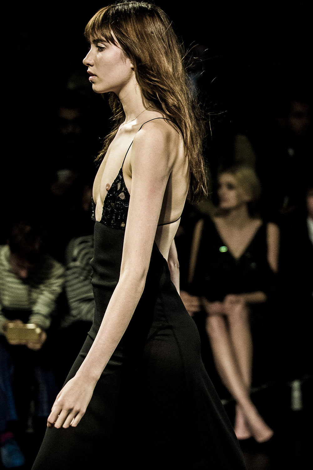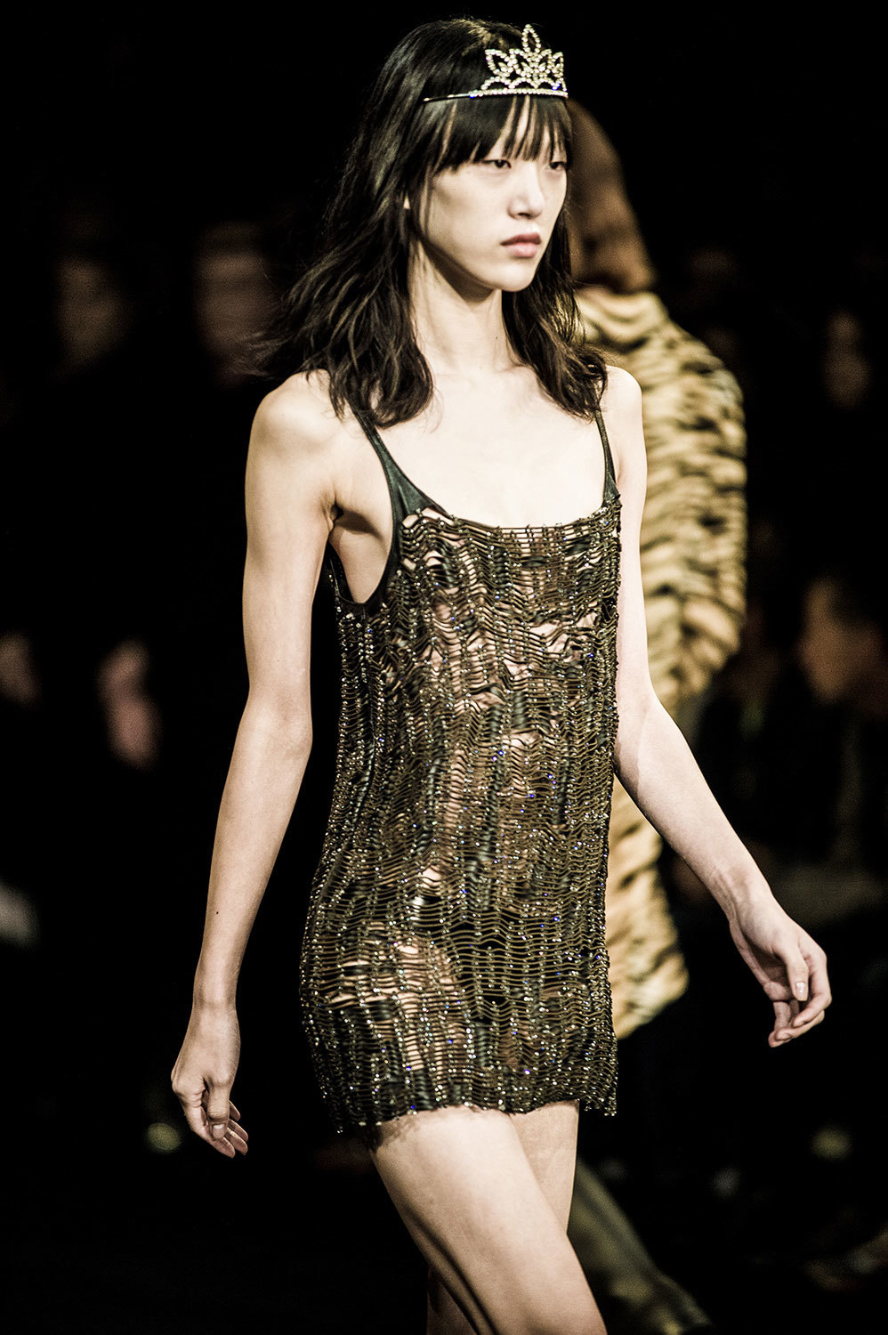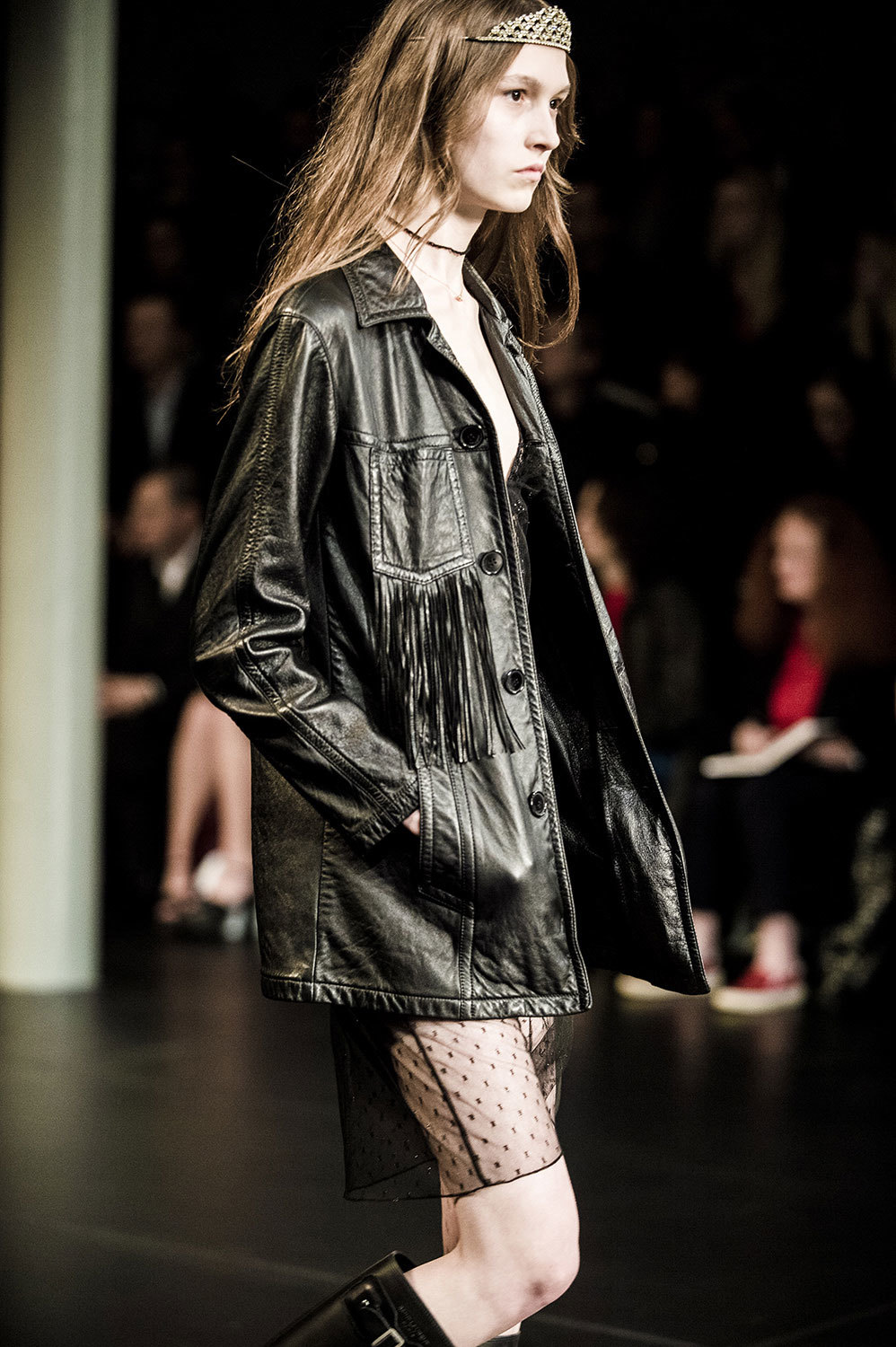 The queens of night came nip-slipping out in tiaras, rainboots, and evening dresses, as well as classic Hedi staples of biker jackets and animal prints.