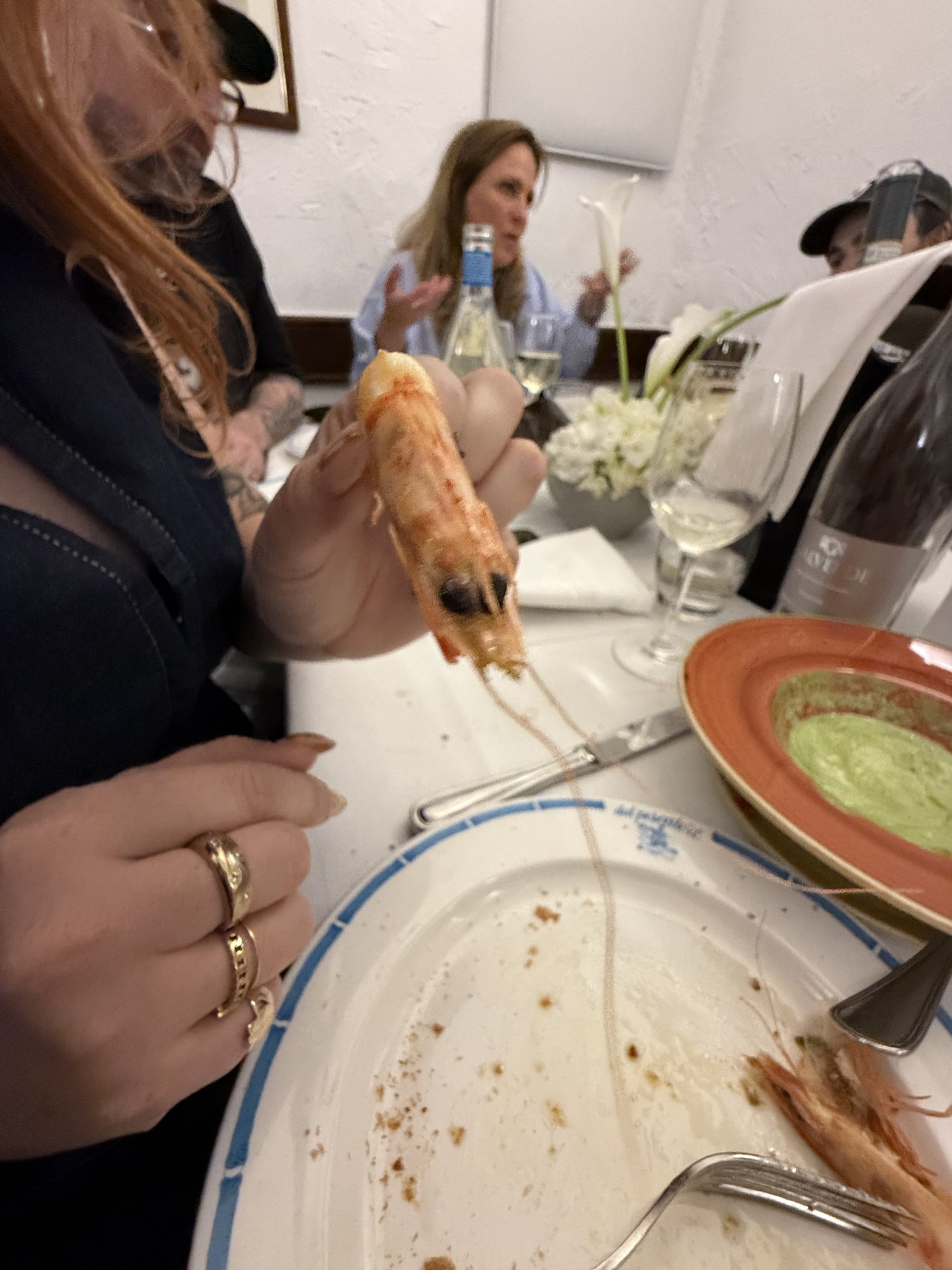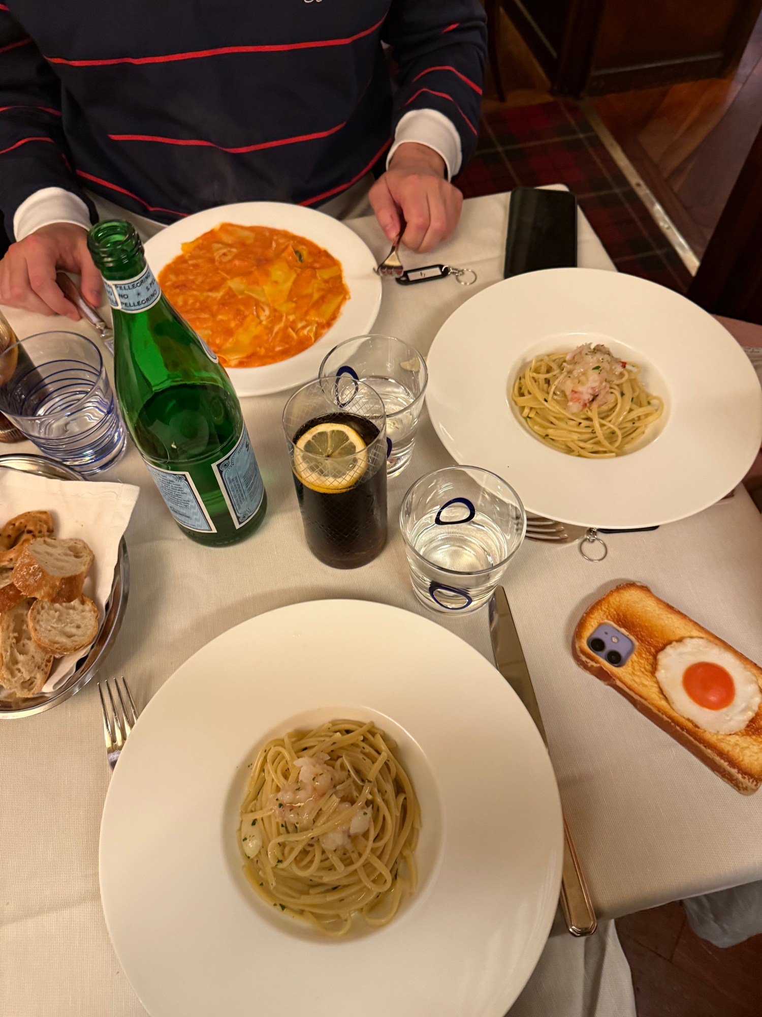 Alex: Fresh prawn tartare spaghetti at Bice that nearly knocked me out with garlic. The most luscious veal steak at a friend’s dinner at Osteria Grand Hotel—something I’ll be thinking about for the rest of my life. And a pistachio sfogliatella from Princi that briefly aligned all my chakras.
