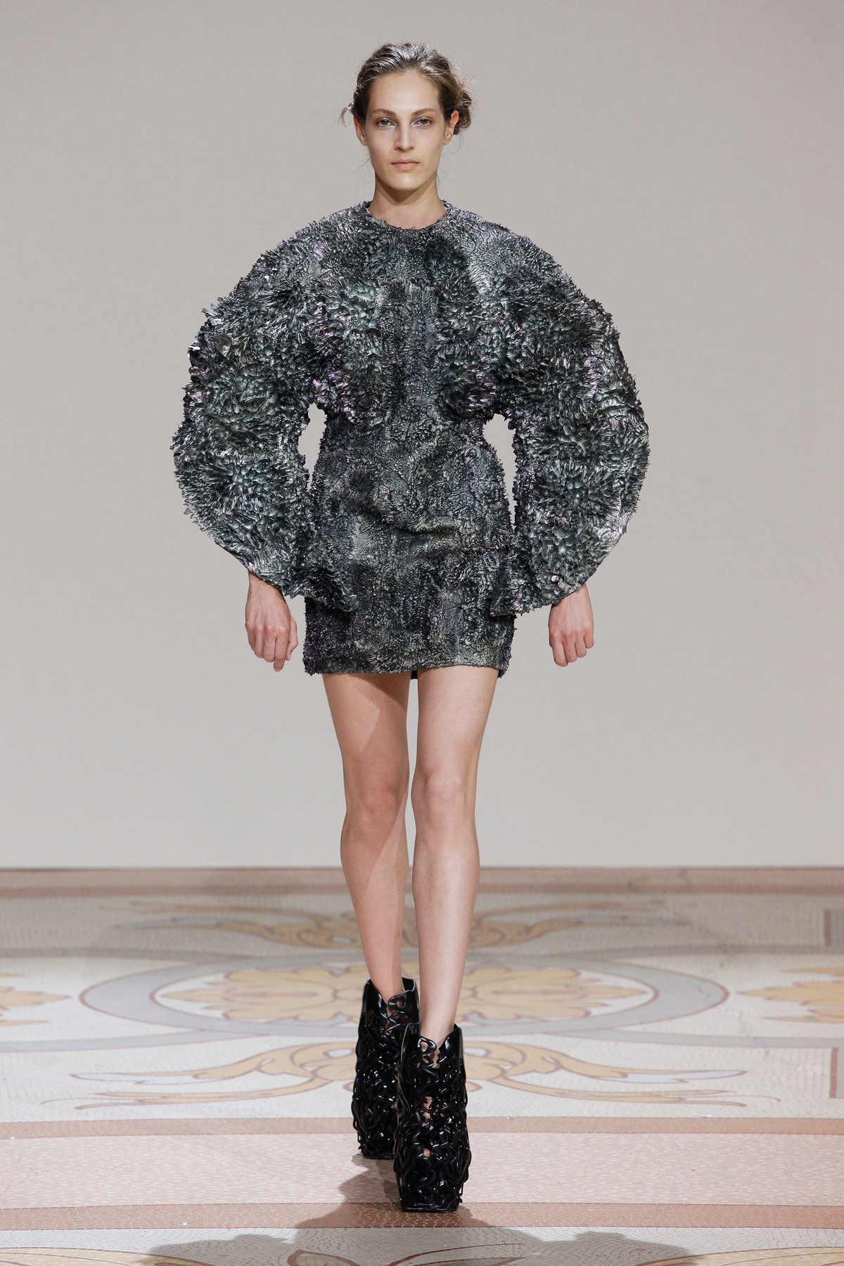 Es war nicht weit von dieser futuristischen Hunger-Games-Idee entfernt, die Lenny Kravitz in seiner Rolle des Stylisten für Katniss’ Girl on Fire-Kleid hatte. Solche Kreationen sind wie aus einem Märchen: entworfen, um klug und interessant zu sein, und sie sind Innovationen der Mode, aber auch einmalig – Highlights eben. Das eigentliche Phänomen, das die Mode revolutioniert, scheint 3D-Drucken zu sein. Iris van Herpen ist eine 29-jährige holländische Designerin, die 3D-Druck benutzt, um Couture zu entwerfen, die bis ins kleinste Detail fantastisch, heliakisch und zu 100 Prozent symmetrisch ist. „Der große Vorteil des 3D-Druckens ist, dass es dabei keine Einschränkungen in Bzug auf Dreidimensionalität oder Komplexität gibt. Alles, was vorstellbar ist, ist möglich”, sagt sie. Im Moment ist das Hauptproblem, das den 3D-Druck davon abhält, die Macht in der Modewelt zu übernehmen, dass die verwendeten Materialen nur feste Formen annehmen können. Das ist großartig für alles Dreidimensionale, doch wird es dir in naher Zukunft deshalb noch nicht möglich sein, zu Hause ein T-Shirt auszudrucken. „Weil ein Kleidungsstück normalerweise aus Stoff besteht, muss jede Form, jede Dreidimensionalität, die du hinzufügen willst, in den Nähten verändert werden. Also beginnst du zweidimensional (mit dem Stoff), woraufhin du es dann dreidimensional machen willst (damit der Körper gut hineinpasst). Dieser Übergang von 2D zu 3D bringt viele Schwierigkeiten mit sich. Beim 3D-Drucken beginnst du dreidimensional; das ist die absolute Freiheit. Ich kann so komplex und detailliert in alle drei Dimensionen gehen wie ich möchte, ohne Rücksicht auf irgendwelche Nähte nehmen zu müssen.”