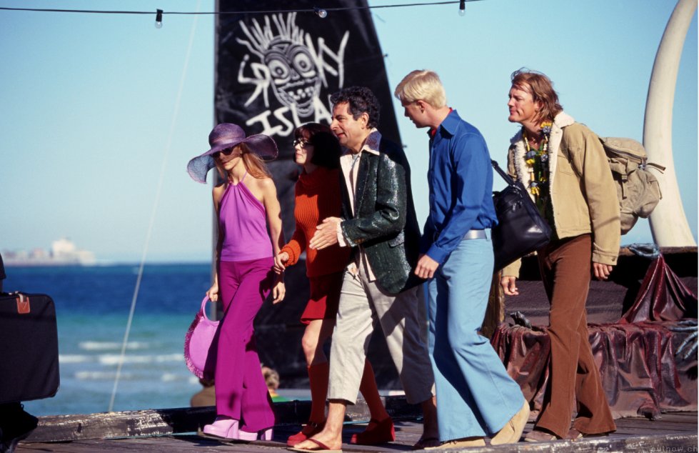 The movie perfectly encapsulates the current style overlap of now: the coalescence of the 70s and 00s. Everywhere we look, the fashion-forward are in flares and skater jeans; barely-there tops and band T-shirts. Look to the runway and you’ll find looks that could, realistically, be transposed onto the Scooby Doo cast too.
