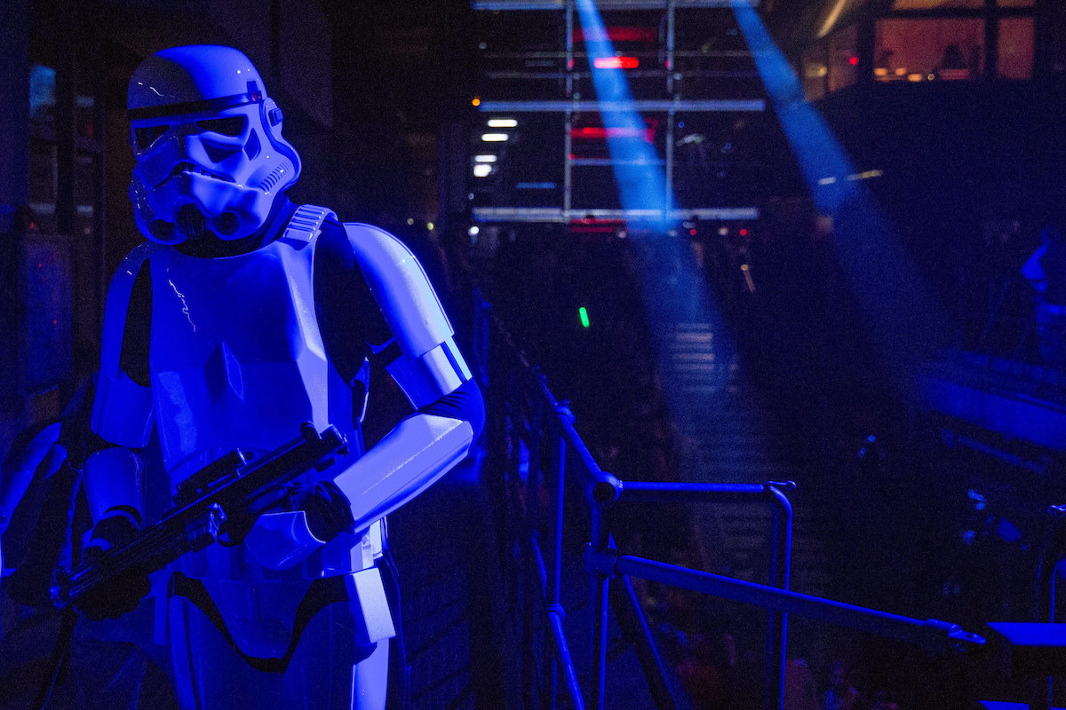 Secret Cinema presents Star Wars: The Empire Strikes Back is a fully immersive, once in a life time experience – initiated into the Rebel Alliance via a sand-hewn shipping container and under the watchful eye of a Storm Trooper or two – the audience, which is made up of Galactic Explorers, Mercenaries, X-R Wing fighter pilots, and a few homespun Jabba’s – is led through various star ports; whisked off earth – and dumped on the dry and dusty planet of Tatooine.