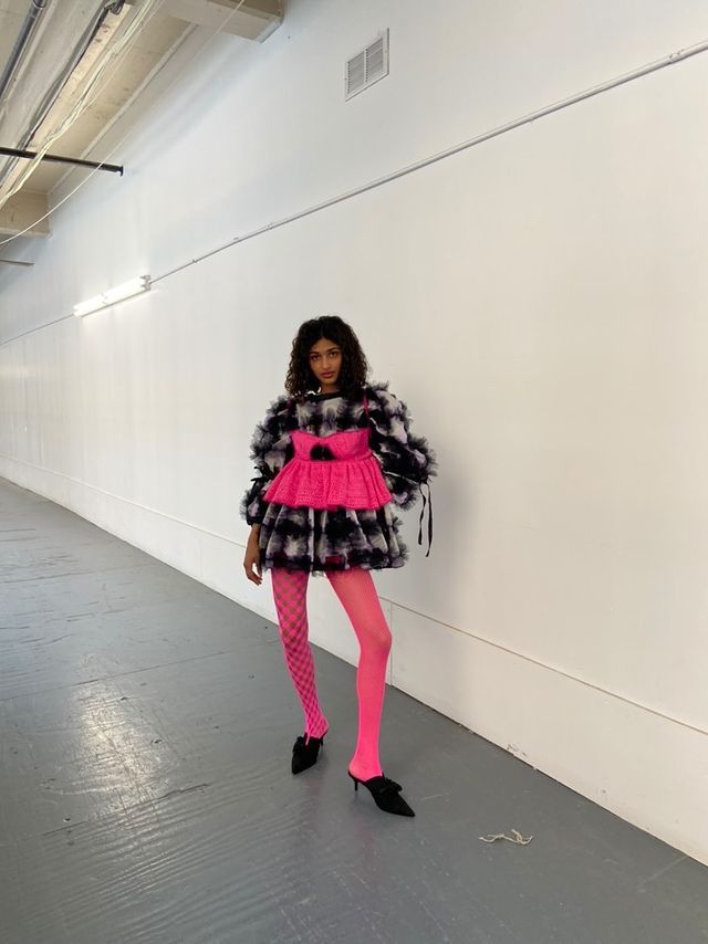 I wouldn’t say I’m designing against the associations, but making clothes my peers and I would feel sexy and cute wearing. I embrace the lacey quality, the ruffles and frills. Crochet and knitwear is commonly associated with a certain kind of femininity that equates to docility or subservience because of its relationship to the home and the homemaker. Instead of viewing that as a negative aspect of the practice, I like to subvert it, which results in garments that make the wearer feel powerful and sexy.