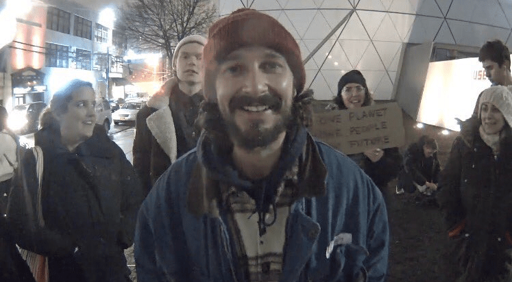 Shia LaBeouf has been arrested by NYPD, because of this video #HeWillNotDivideUs #FreeShia pic.twitter.com/Sj8RqP7uGm — #HeWillNotDivideUs (@HWNDUS) January 26, 2017