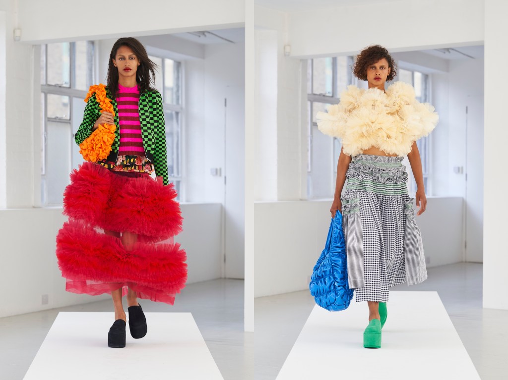 The bare white walls of the Hauser & Wirth Gallery in Mayfair couldn’t be further from the ornate locations that Simone Rocha has previously staged her pulse-racing shows — the gilded opulence of Lancaster House, or the faded grandeur of Alexandra Palace, for instance. This is a designer who knows how to bring a catwalk to life, whether it’s unexpected casting, a powerful soundtrack, or simply a visual parade of splendour and beauty. As one of the few designers to stage a physical presentation this week — albeit entirely socially-distanced, three-people maximum, temperatures checked, forms filled in etc. — Simone wanted to do things differently. “I always design a collection in the lead up to the show with a beginning, middle and end,” she explains. “Every element is a performance.” This time, the clothes needed to sing for themselves acapella. As it happens, the first place she rushed to as lockdown measures were eased was the Sadie Coles Gallery to see a Sarah Lucas show — and she describes the experience of seeing art on white walls as restorative. So, she staged her own presentation to feel like a Saturday afternoon outing to a gallery. “It felt necessary,” she explains. Though the walls may have been bare, there was plenty to look at — and these were certainly clothes that deserved a look IRL.