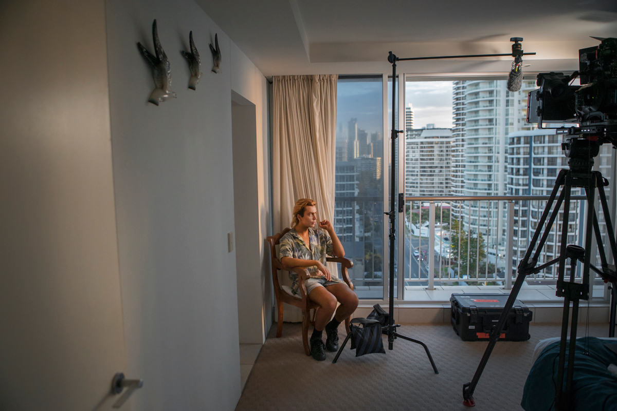 There probably isn’t another image, anywhere, of Kurt Coleman quite like this. Almost every other photograph has been meticulously brushed and brightened, by Kurt himself, to achieve a near alien flawlessness. It’s nice to see the young man from a distance—here, is was resting in between takes for an interview with the ABC. On set, he told photographer Aaron Smith there’s really just one thing he’s good at; “I don’t have a real talent. My talent is being myself. You might not get that, but that’s literally my talent: I’m professional at being myself.”