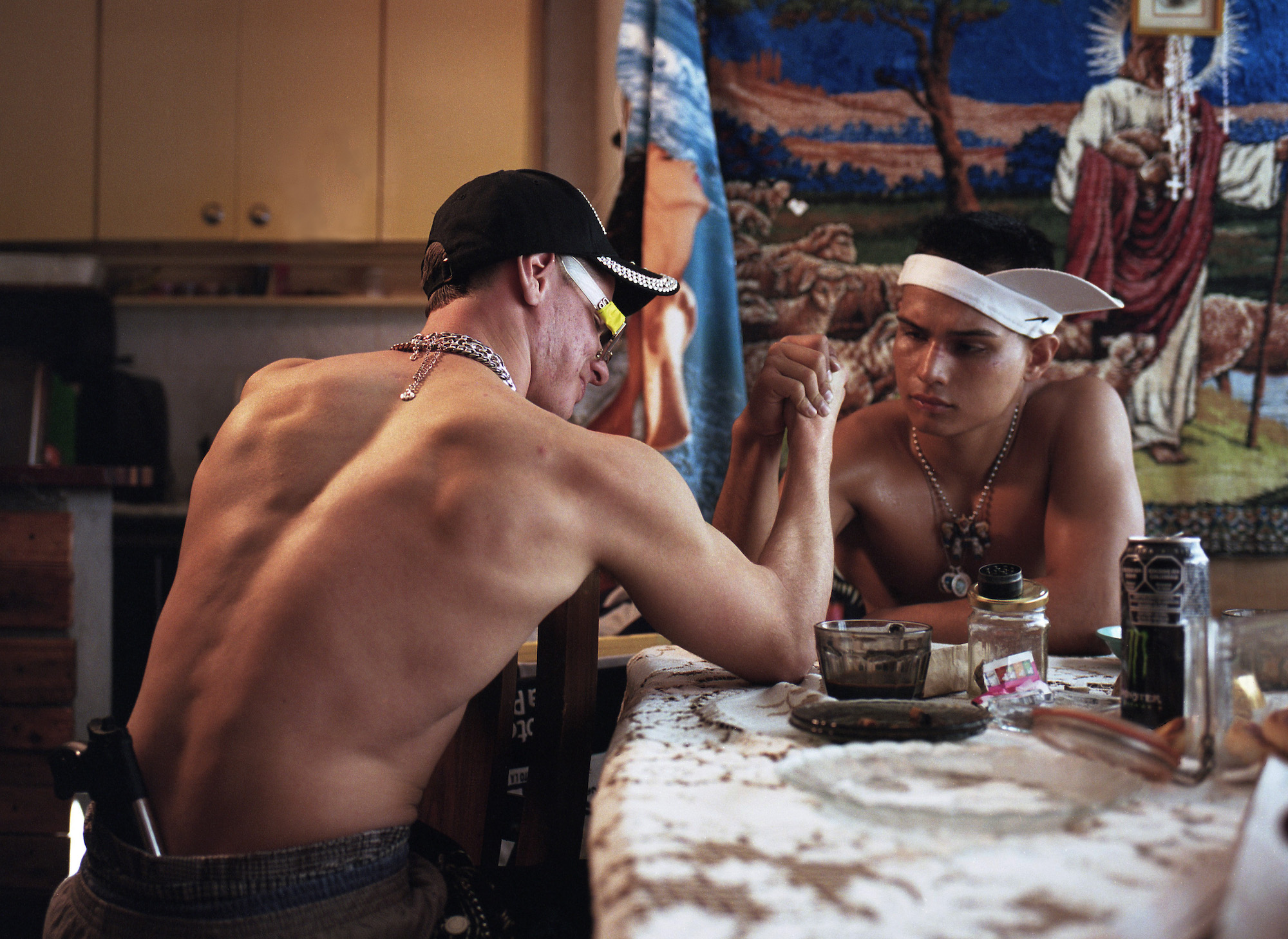 Turros balances the sharp edges of masculinity with warm lighting and soft feelings of friendship. The portraits capture a day in the life of a group of boys spending time with one another fixating on a PlayStation game or arm wrestling. “I wanted the spectator to feel the bond with each other and the intimacy,” Sofia says. In a time where girlhood is occupying the mainstream cultural consciousness, Sofia tackles the quiet fantasies of boyhood.