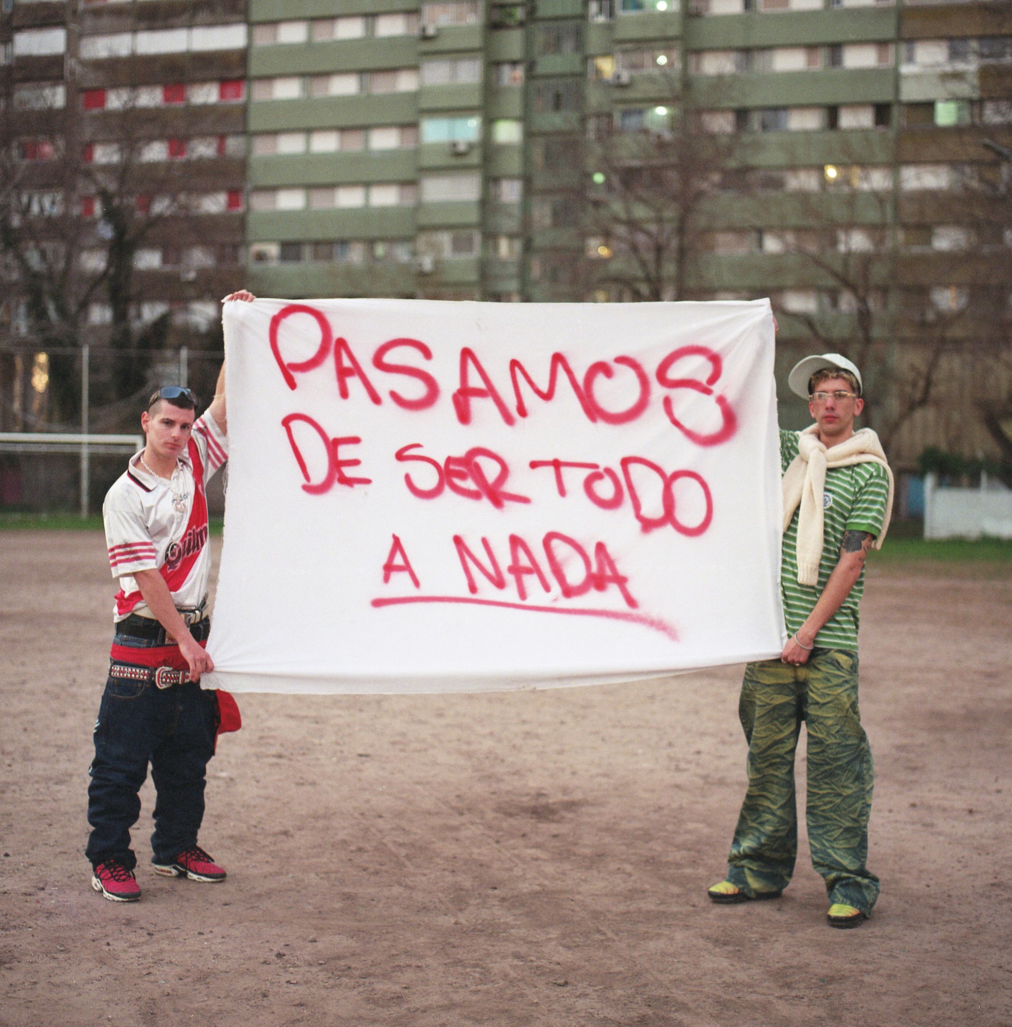 In shots of Turros, there’s a youthfulness (and perhaps naivety) to the subjects that juxtaposes the monotonous and harsh city background. One of the most captivating photos is a man with a buzz-cut and tattooed chest gently cradling a baby in his arm. Sofia and her team gracefully balance stereotypical hyper-masculinity with actions of loyalty and care.