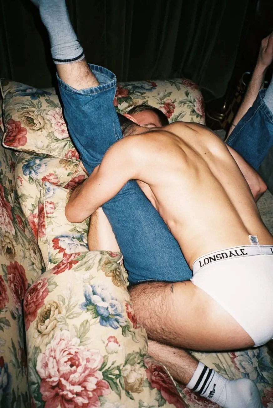 Throughout Coporeal, the euphoric shots are interspersed with the occasional still life; moments of calm that range from sun-ripened oranges in Athens to a messy table scene; an abandoned wig and a champagne bottle. “An image of distraction,” says Spyros. Most of the photographs, though, depict people embracing, loving and celebrating. Bodies lying together messily, or standing confidently by themselves. A celebration of queer desire and acceptance. “At the end of the day, it’s the body that we live with as we move through the world,” he says. “How we present our bodies to the world is always a statement. It’s not just about presenting a traditionally beautiful body. Every person should know that they are special in their own way.”