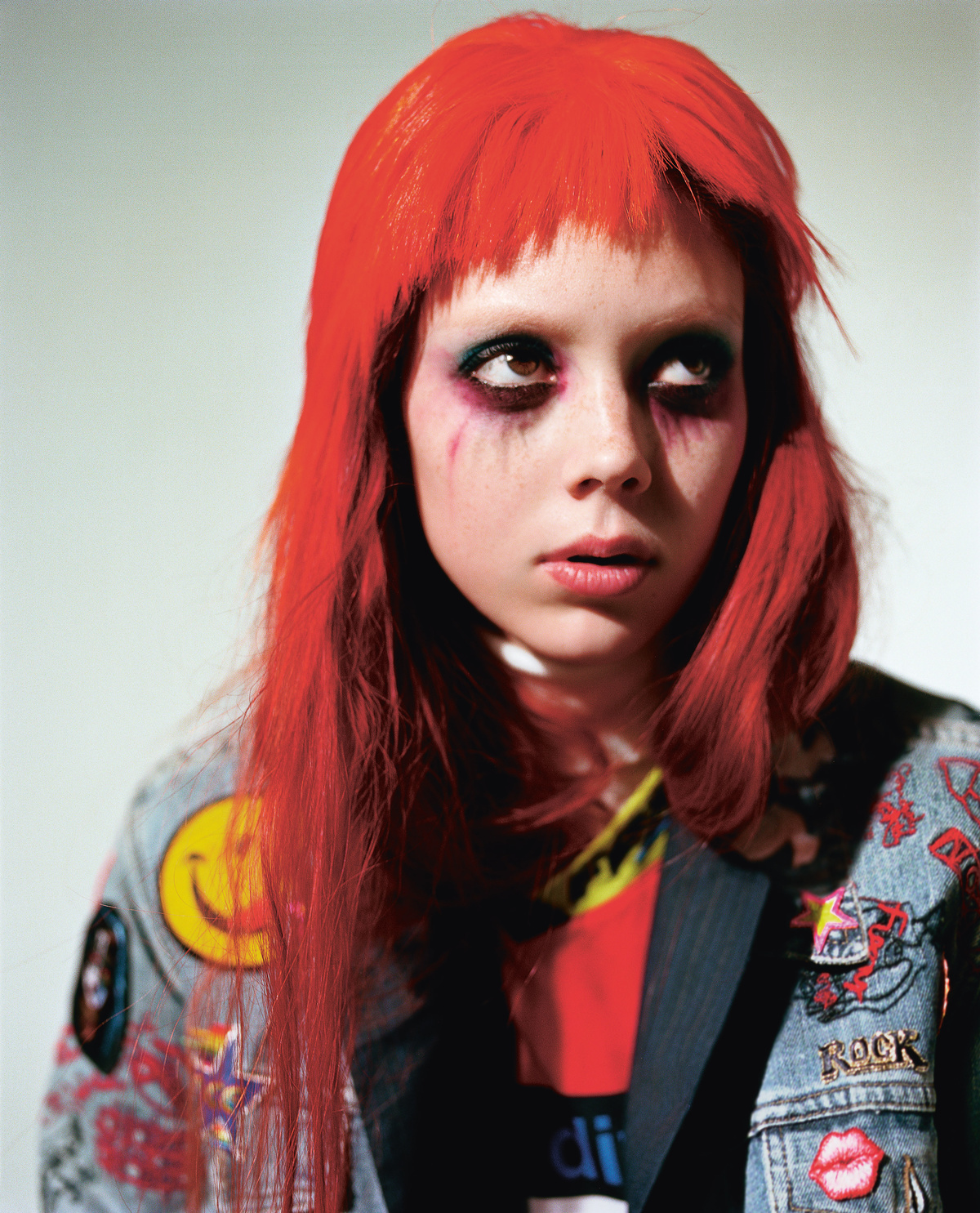 Jacket vintage at Rellik customised by Eunkyeng Seo using patches from Mint Vintage and Jennie Maizels. Jacket (worn underneath) DKNY. Top Fox at Freestyle Extreme. Roll neck Uniqlo.