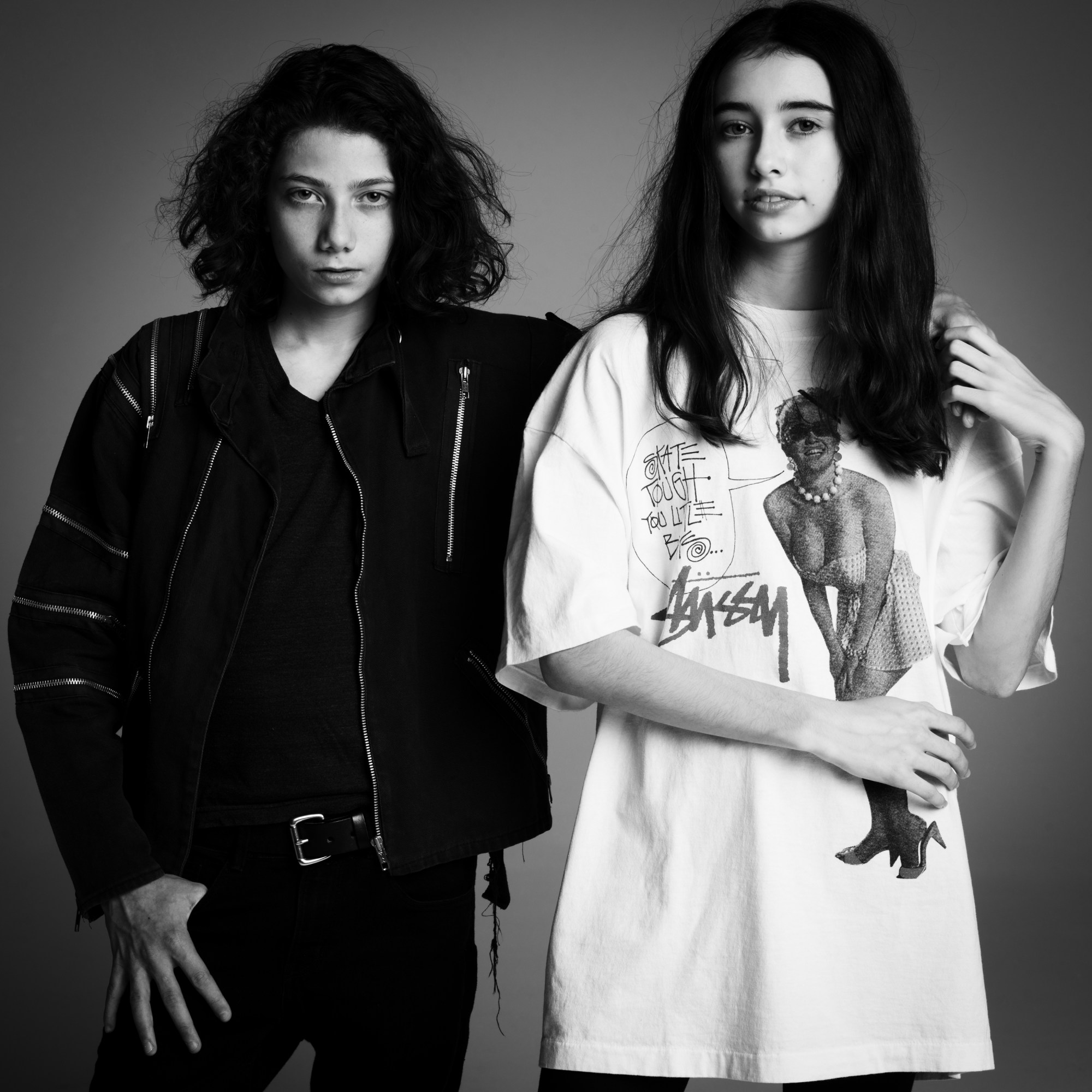 AM: We’re so used to the T-shirt being very commonplace. But when you look into it, there’s so much there to analyse. I have a Stüssy shirt that I wore to death when it was brand new and black. The more destroyed it got, the more Amy was into wearing it. Now it’s grey and sleeveless and hers. There are so many photos of us where I’m wearing the T-shirt, and a year later, it changed.