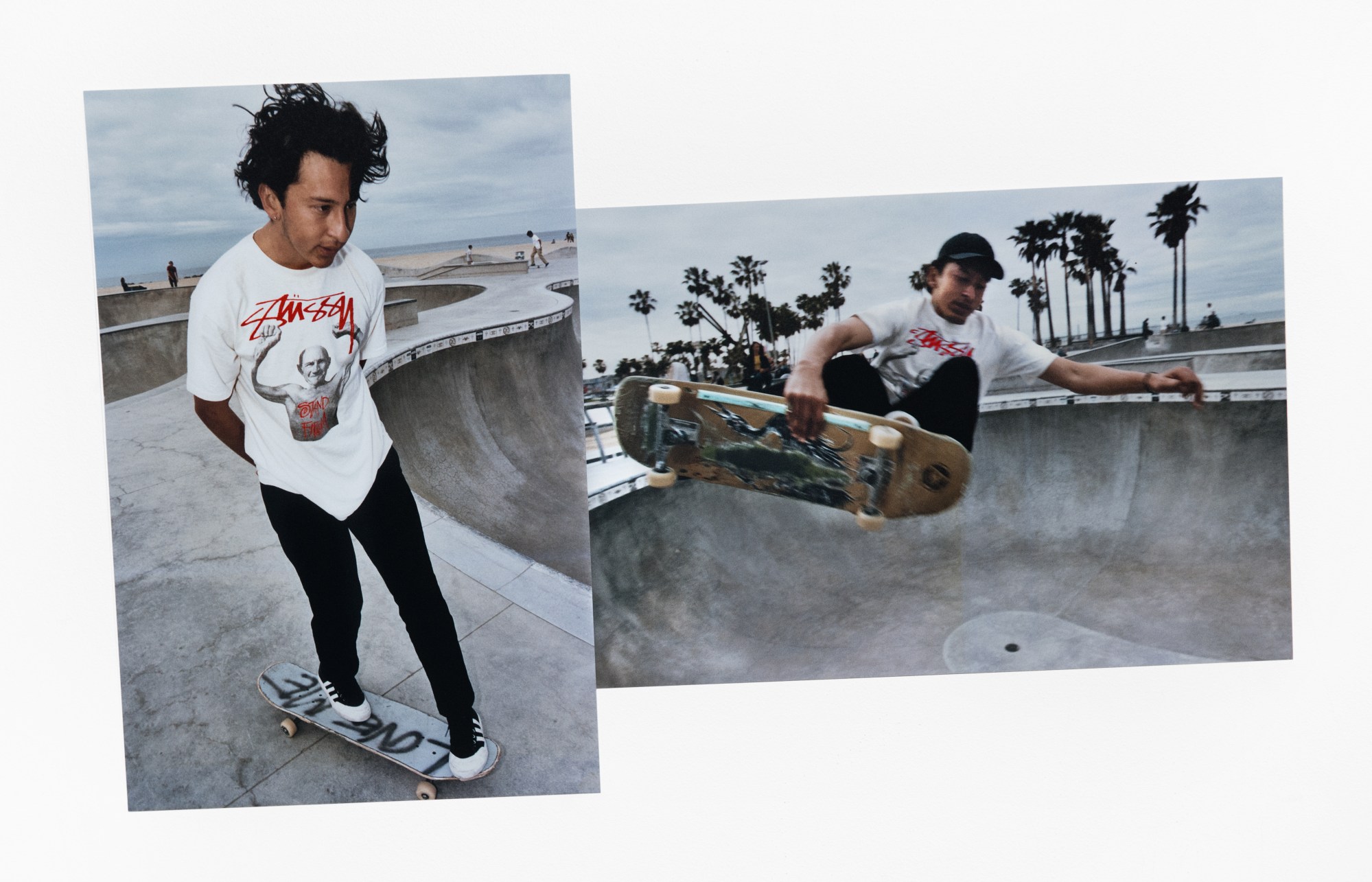 RW: It’s old campaigns, old photos, photos some of my friends had taken that never got published anywhere. At the office, they have all these screen burns that they used to send to the t-shirt printers before everything was done digitally. It’s all hand-written designs and instructions for the T-shirt graphics. Emmy [Coats, Stüssy’s PR Director who has been at the brand since day one] found a 5×7 photograph taken behind-the-scenes at an 80s campaign shoot in a shoebox or something. We also discovered some photographs that Terry had done in 2001.
