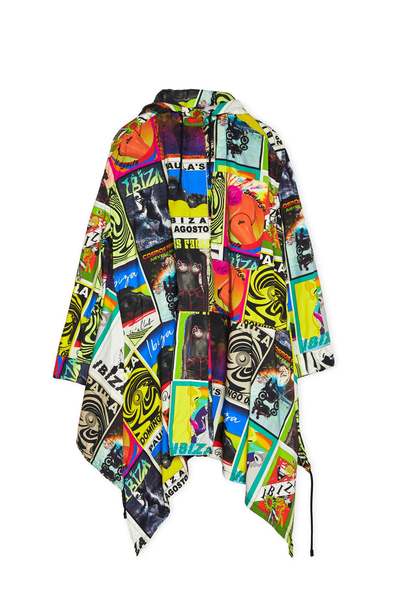 The clothes back then mirrored this freedom — colourful, baggy, makeshift — and, as we wrote when commemorating its thirtieth anniversary of the Summer of Love in 2018: “It was Great Britain loosening its tie, and its reverberations are being felt to this very day.” All these principles that dictated the particular style choices of this movement can be found here in the new Loewe Paula’s Ibiza collection. The fits are loose, the colours clash in wonderful ways, the accessories make a statement if little else is to be worn with them. “Shape and print enhance one another: mermaids swim amongst red corals on maxi-dresses and long robes with ruffled sleeves,” Jonathan says, “jikin goldfish wander amongst waterlilies on wide-hemmed capri pants, bolero skirts and swimwear.” Whether it’s the print of a poncho resembling the scene’s iconic club posters, the psychedelic pink and greens of the tie-dye sweater, or the clashing of a T-shirt in two prints split down the middle, the collection comes alive.