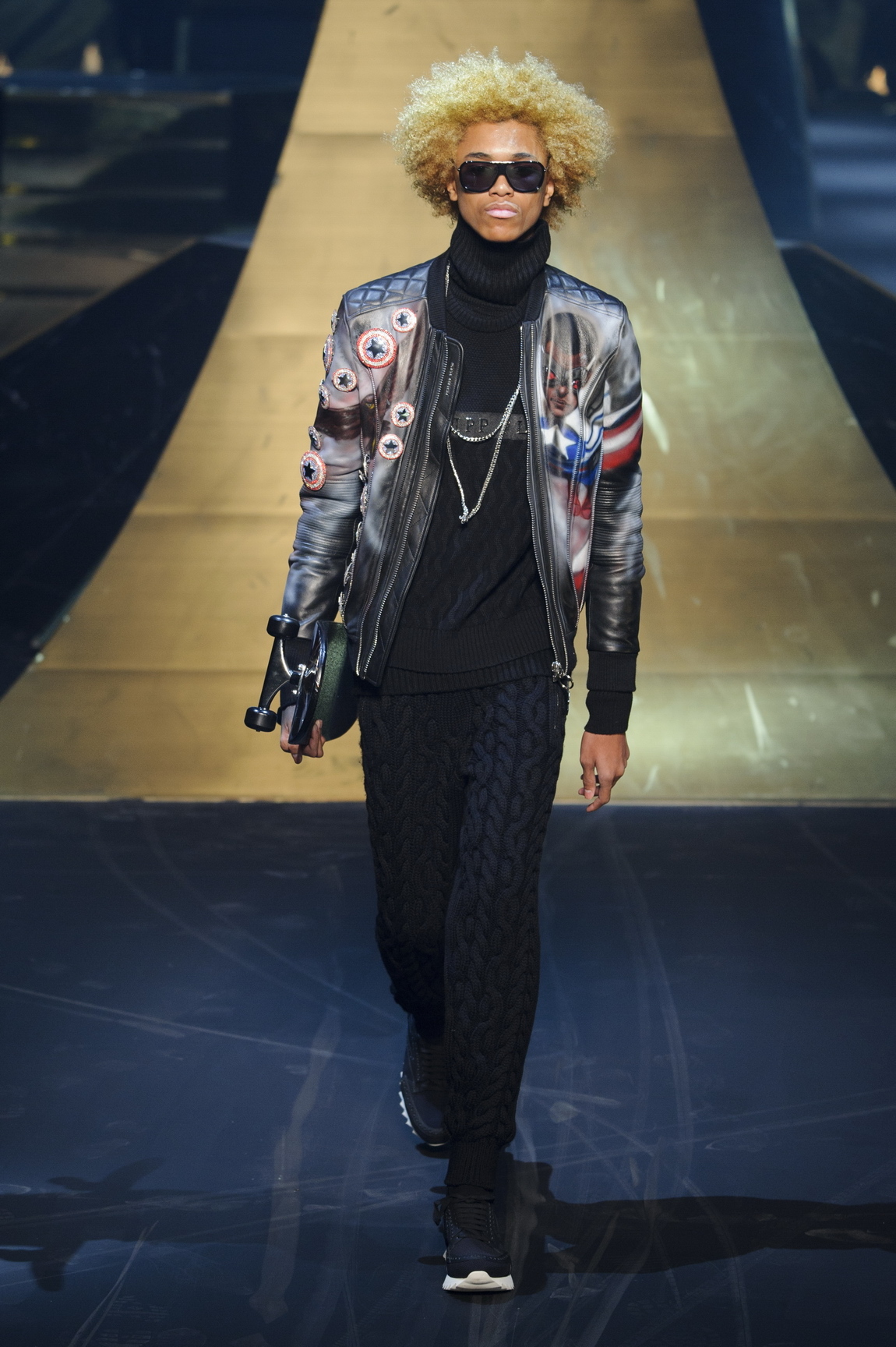 Philipp Plein shows are like the superbowl of the fashion world, blending sports elements like ice hockey padding and motorcycle leathers with a studded and sparkly Beyoncé-level of glamour.