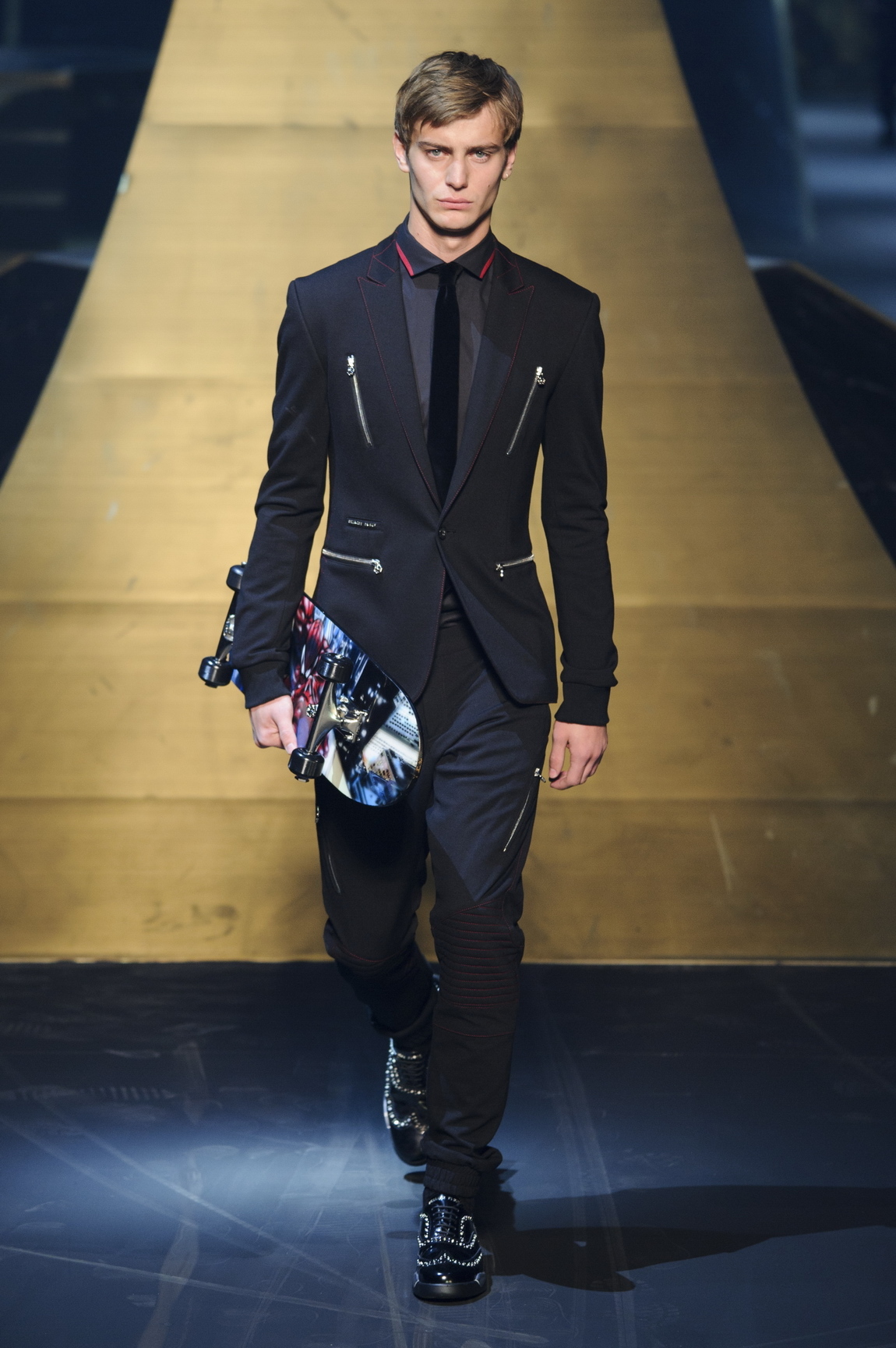 Although the German designer went for a slightly more subtle take on modern masculinity for autumn/winter 16 — dressing a squadron of hot models including Lucky Blue Smith in chic black tailoring, panelled leather and gold studded accessories — he still put on a huge show. Lil’ Wayne performed atop a golden skate ramp, accompanied by a 30 piece orchestra while stunt performers whizzed past on skateboards and BMX bikes – if that’s not a modern luxury experience, we don’t know what is.