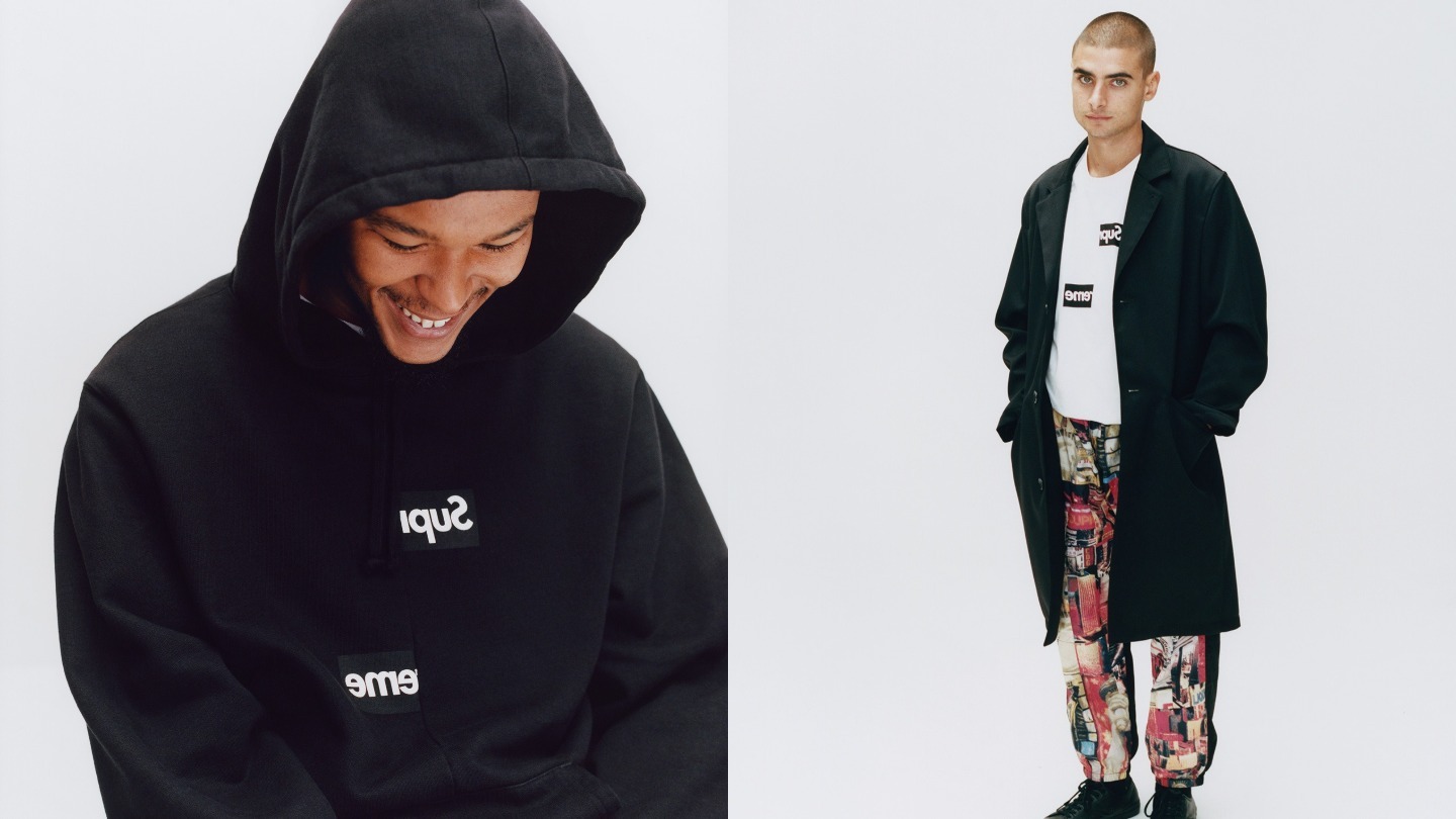In streetwear lore there are few things as sacred as the Supreme box logo. For years the iconic logo has been one of the most recognised, most sort after and most copied graphics in fashion. Perhaps the only thing more lusted after than the box logo is the brand’s flips and changes to said logo. That’s just one reason why the new Supreme and Commes des Garcon SHIRT® collab range, featuring a black and white box logo split in half is sure to be one of the year’s hottest drops.