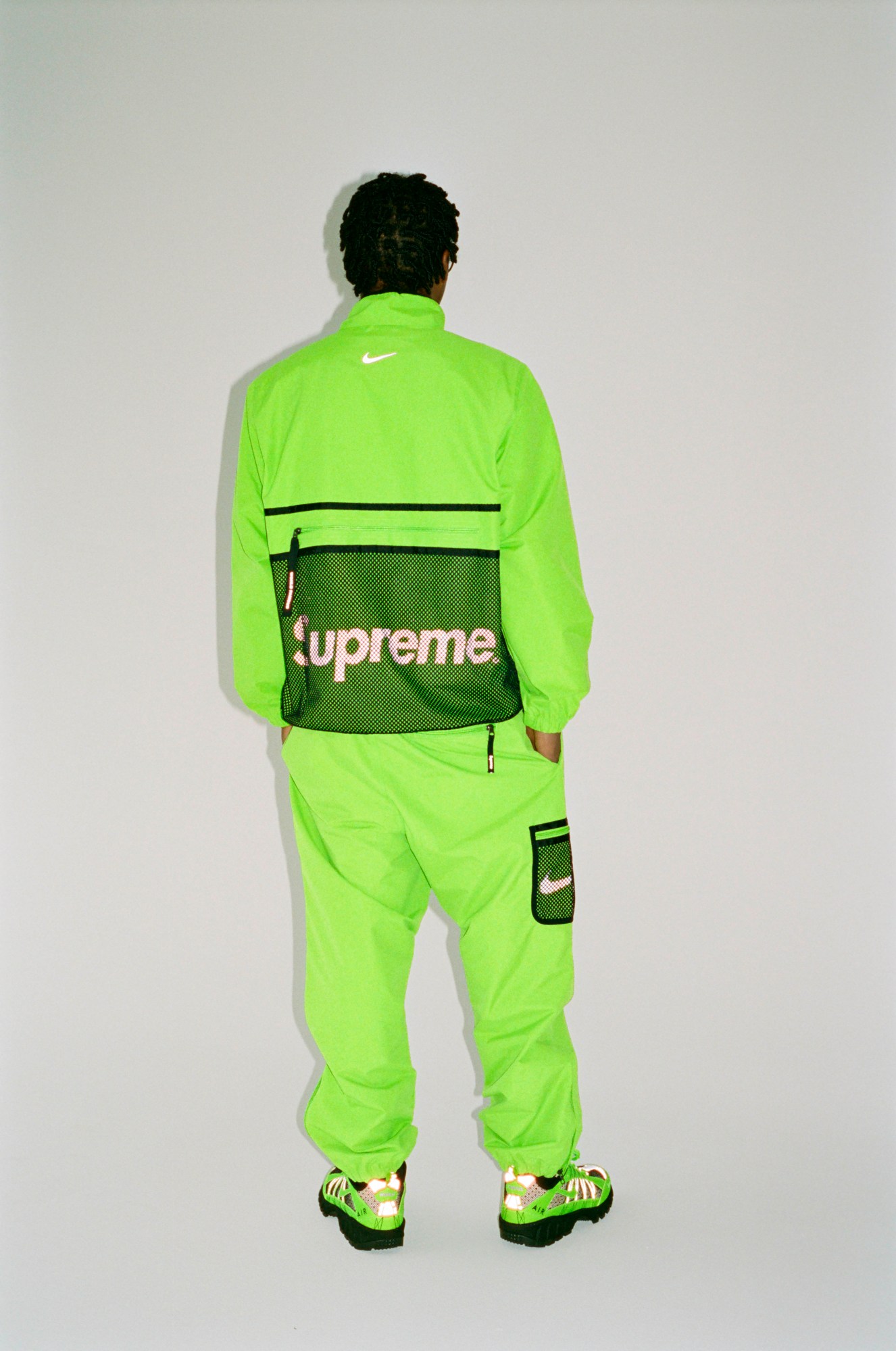 Alongside the reflective detail rich trail running jacket, pant and hat, the Air Humaras feature a reflective perforated body with mesh overlay, reflective printed graphics toe details, heels and webbing lace supportive. The collection is what gorpcore dreams are made of. Available in four colours — hot pink, acid lime, aqua blue and black — like all good releases, they’ve split the internet into lovers and haters — which side do you fall?