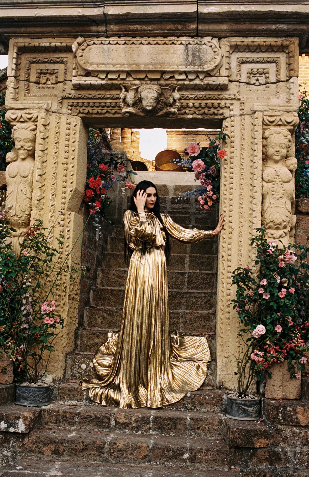 In a campaign released last month, Florence Welch, Anjelica Huston, Jodie Turner-Smith and Susie Cave take centre stage in a cottagecore-goes-nocturnal spooky garden. Directed by Floria Sigismondi, the film opens with Florence exploring the abandoned surrealist architecture of an ancient Franciscan convent, and builds towards a dreamlike sequence as flowers explode from the sky. Parallel universes also play a part. It’s very that.