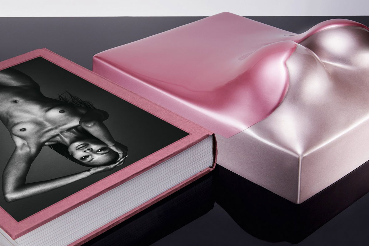 The second volume includes an autobiography that documents Naomi’s early life in South London, following her across the runways of the world and her close relationships with fashion luminaries such as Azzedine Alaïa and Gianni Versace, who were both instrumental in the success of her career. Presented in a custom-made acrylic box shaped like Campbell’s décolletage by top British artist Allen Jones, it attempts “not to illustrate Naomi, but to encapsulate her,” according to Jones himself.