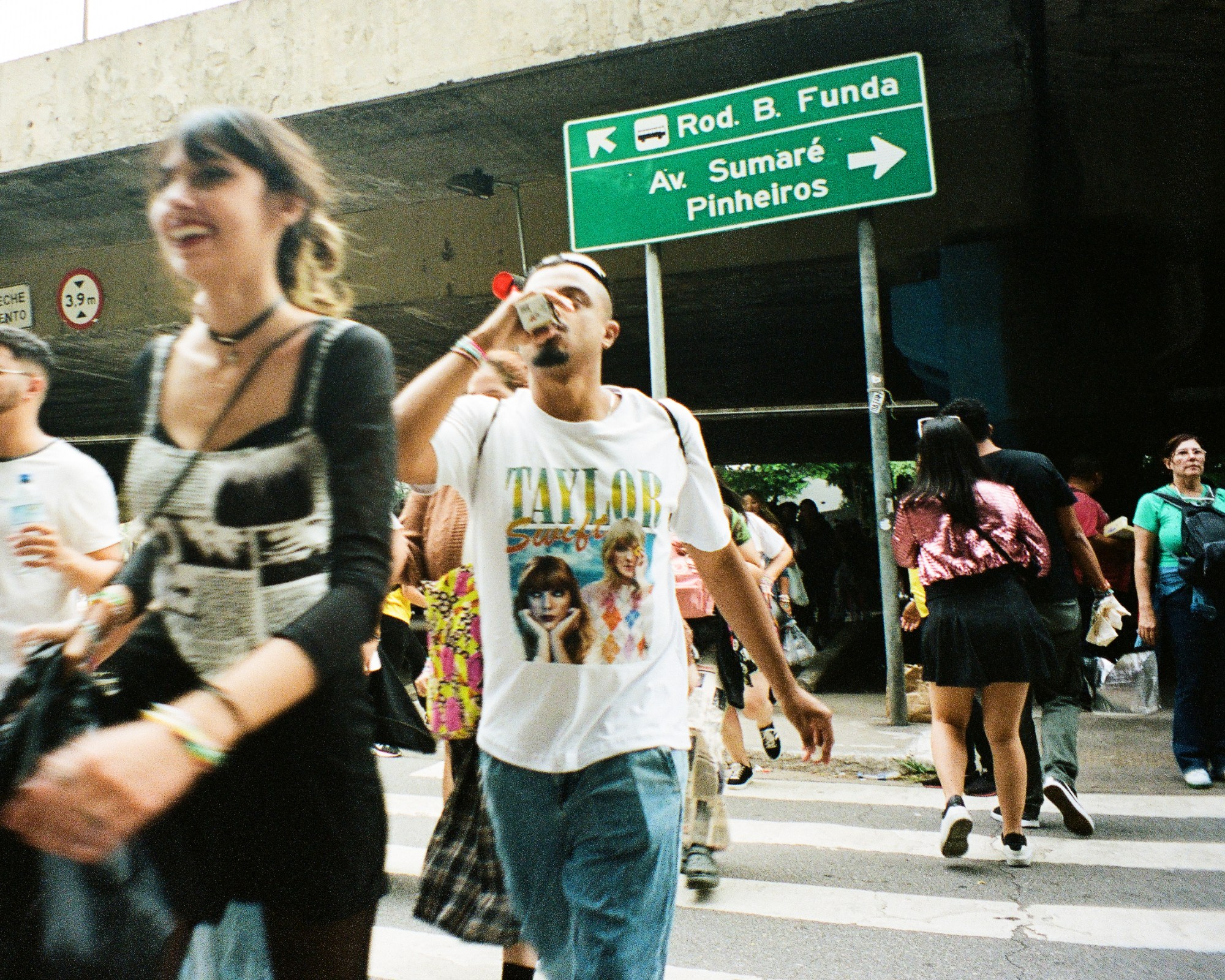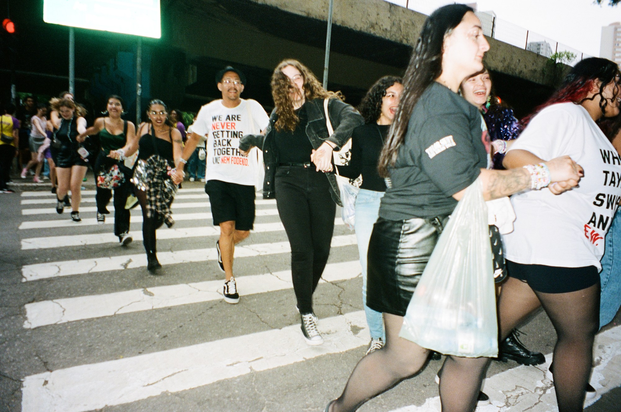 Photograph by Pedro Pinho of Taylor Swift fans crossing the road to see the Eras Tour in Brazil