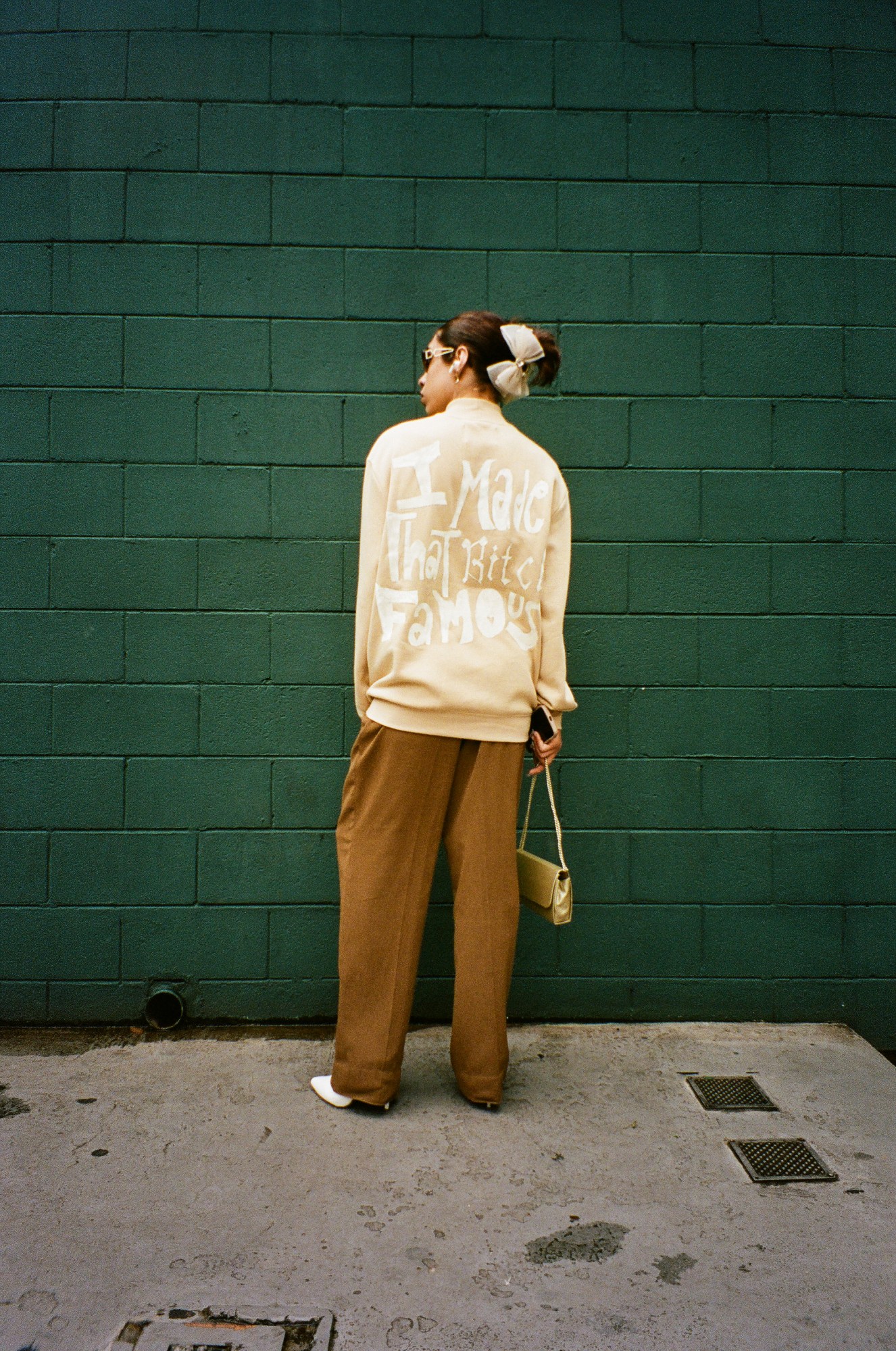 Photograph by Pedro Pinho of a Taylor Swift fan wearing an I made that bitch famous Kanye lyric jacket at the Eras Tour in Brazil