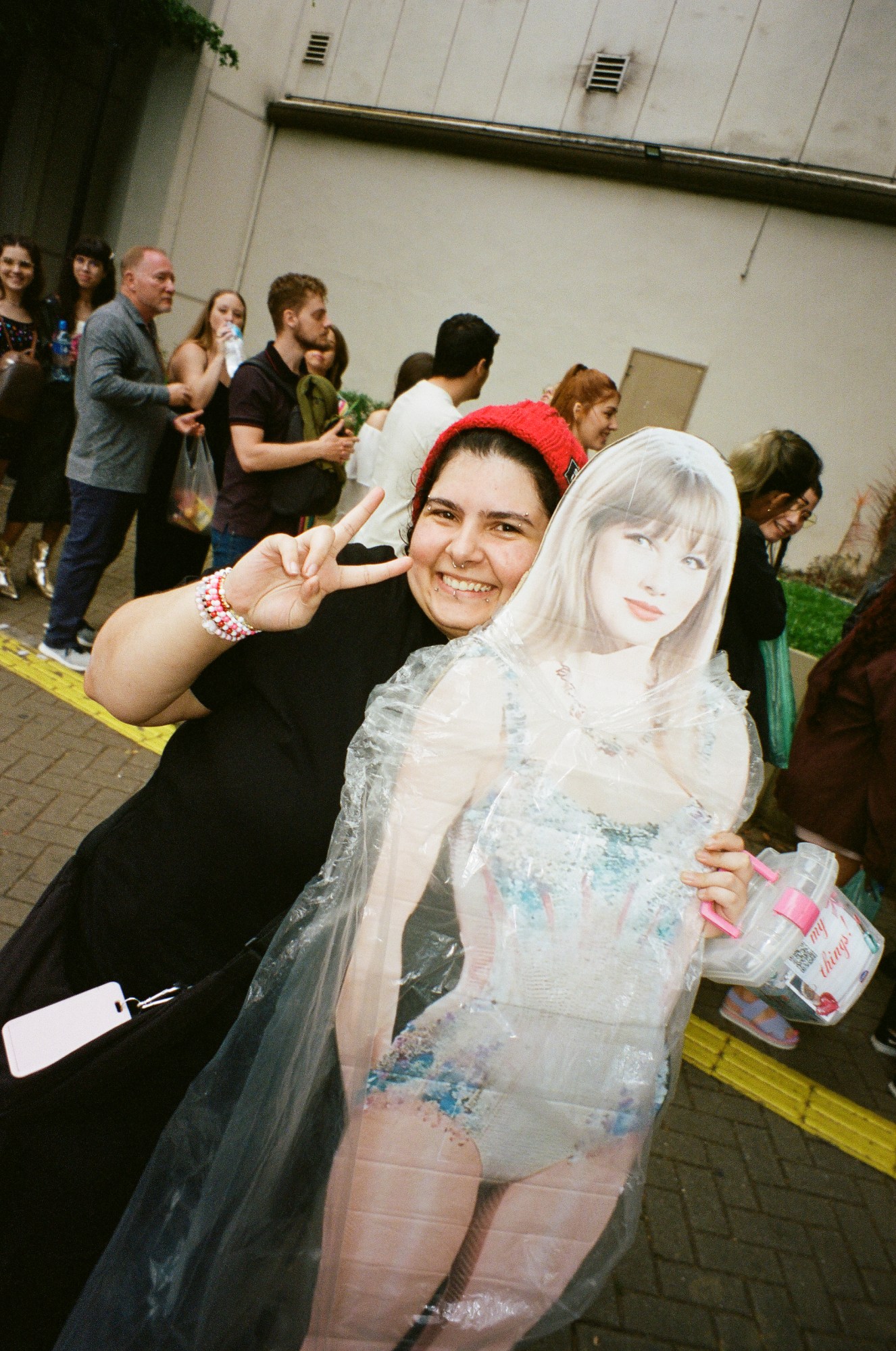 Photograph by Pedro Pinho of a Taylor Swift fan wearing a Red inspired outfit at the Eras Tour in Brazil