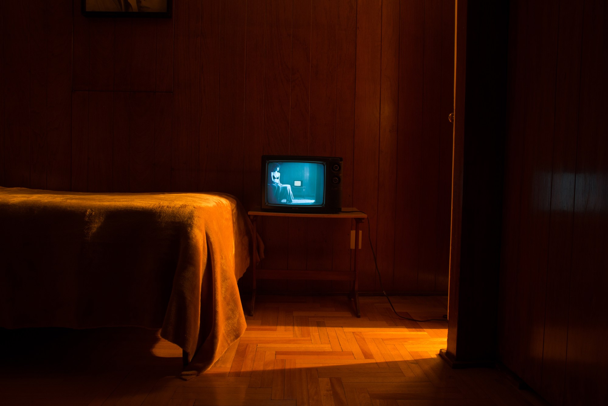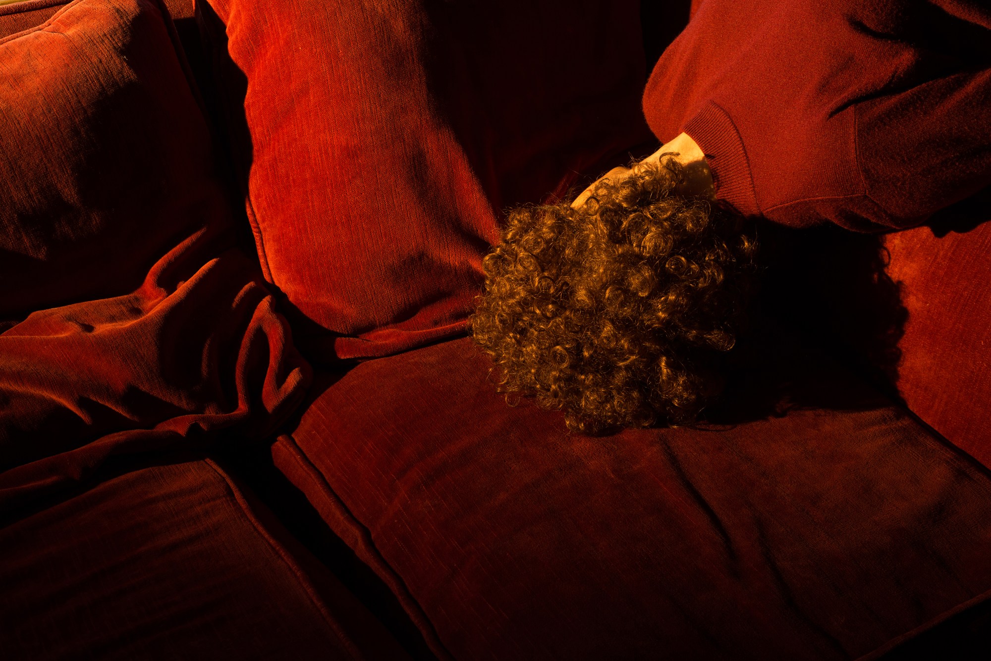 And loneliness, indeed, is at the core of the series. In one picture, an old landline telephone is sitting on a blue-leather cushion stool by a large glass ashtray, filled with lipstick-stained cigarettes butts, denoting a long-awaiting phone call that clearly never arrived. In another picture, the photographer is seen passed out on a wooden kitchen surface, her face reflecting in an old-fashioned chrome toaster, camouflaged in a toupee and glasses, dreaming of another reality.