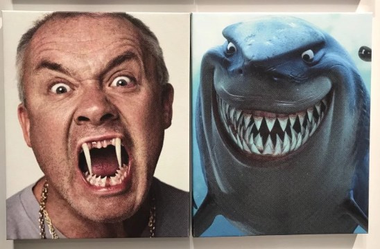 For his latest ride on art world merry go round in Art Basel in Basel (sometimes it’s in Miami or Hong Kong) he brought his Instagram-based work, a marriage of art world doyennes and their celebrity look-a-likes, to Gavin Brown’s booth. The diptychs covered all of the gallery’s walls. Who knew David Hockney looked so much like Iris Apfel? Or that Damien Hirst bears such a strong resemblance to the shark from Finding Nemo? John Baldessari and Papa Smurf? Inspired. Marina Abramovic and a brick wall? Very on point. Italian gallerist Massimo de Carlo and DJ Khaled? Strangely uncanny. Yayoi Kusama and Milla Jovovich as Leeloo Minaï Lekatariba-Laminaï-Tchaï Ekbat de Sebat? Bet you won’t be able to look at one of her polka dot squashes without thinking “multi-pass” now. See the rest here.