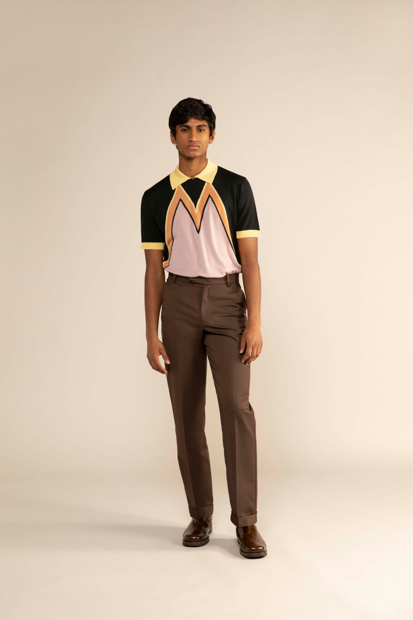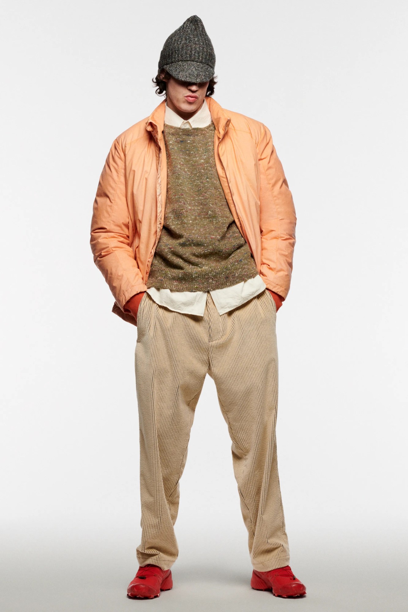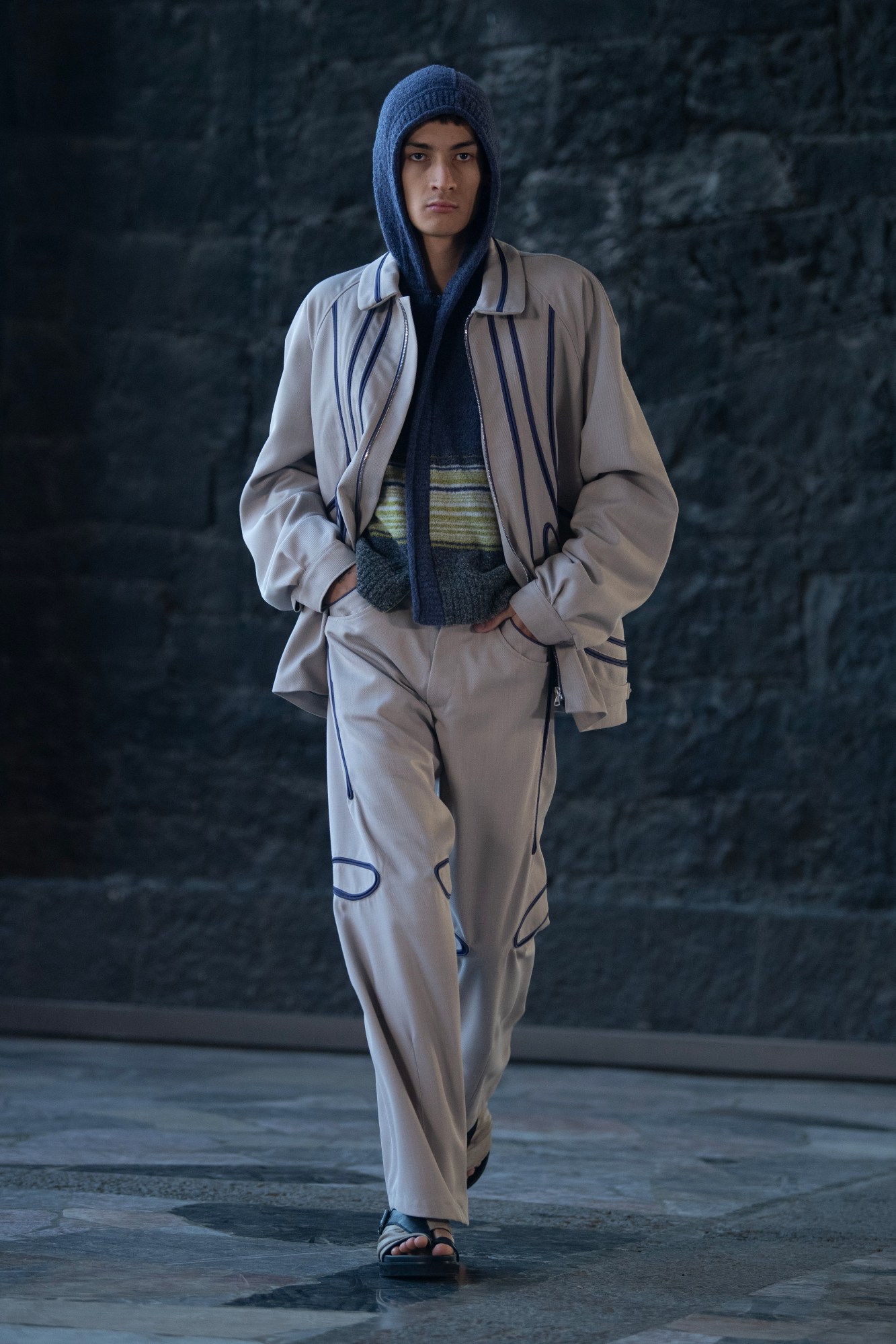 Travel really does broaden the mind, doesn’t it? Two people who couldn’t agree more are the two designers behind British-Icelandic label Arnar Mar Jonsson, Luke Stevens and the brand’s namesake. It was on their regular trips to Northern Italy, where part of the brand’s production is based, that the pair’s eyes were drawn to an archetypal character — the insouciant latter-day dandy seen on terraces nationwide, poring over the morning paper with an espresso in hand, that they’ve since dubbed the ‘maestro’. A nod to the rakish, calmly confident style of these dapper older gentlemen, this season sees the label — once better known for what we once dubbed ‘poetic gorpcore’ — tap into a more textured, casually sartorial energy. It’s something that we saw the beginnings of last season, with the introduction of the label’s signature outdoors-y in tailoring wools, but this season, that extends to earthy cotton corduroys and motted felted wools. Granted, there’s still a bit of gorp on offer here in the form of panelled ripstop jackets and clever fabric treatments — an intentionally abraded uber jacket caught our eye in particular. The overall offer, though, demonstrates an exciting expansion of Arnar Mar Jonsson’s remit — a full wardrobe for any gentleman to wear well into his finest years.