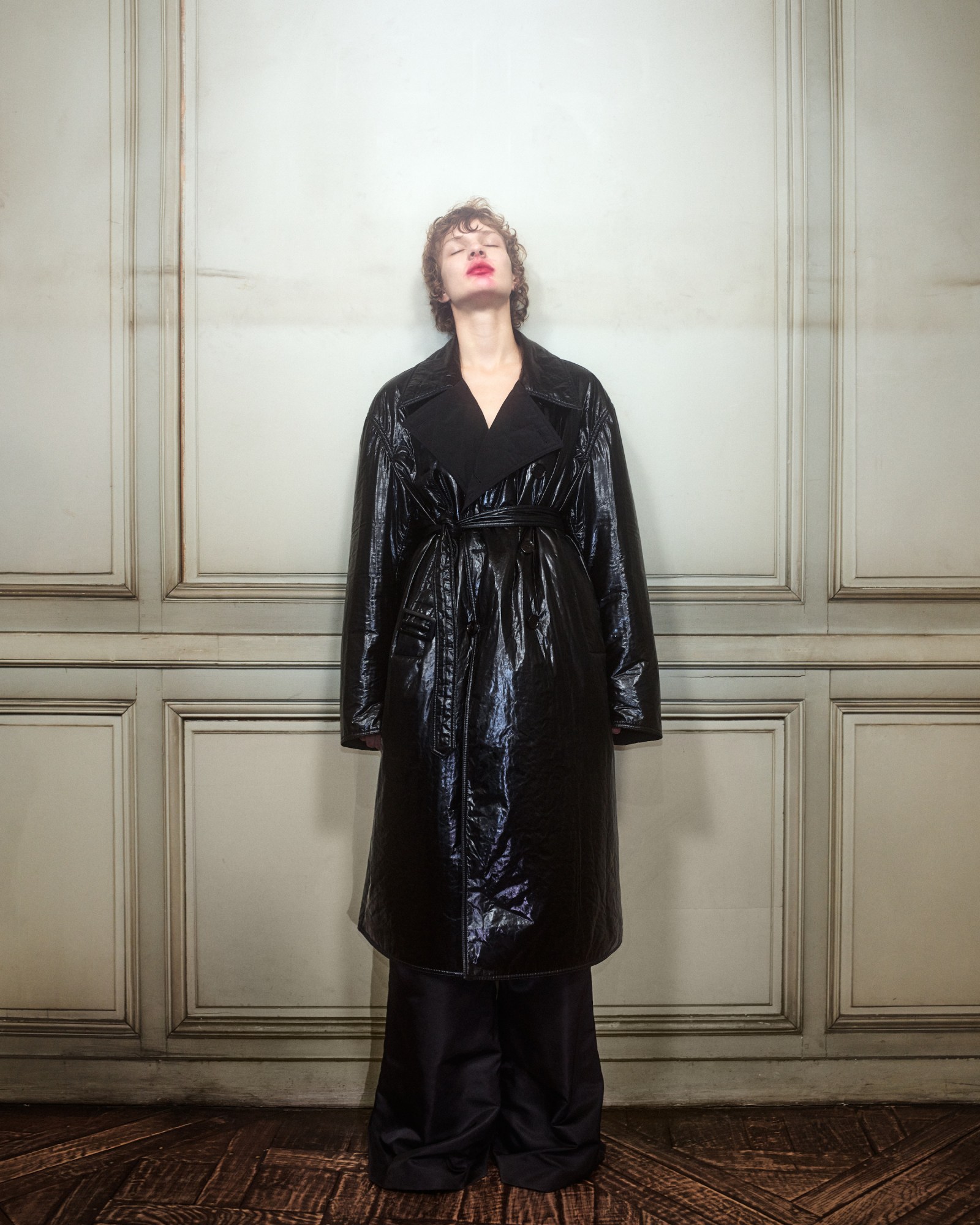 Alongside the familiar silhouettes that he’s fixed as tentpoles of his vision – trapezoidal coats, vinyl miniskirts, the viral trucker blouson (c.f. Marc Jacobs’ Instagram; Emily in Paris Season 2) – it also sees him broach new, notably racier territory. “I think it’s a good mix of what I’ve been doing for a year now, and me arriving at being able to show my vision a bit more clearly – I’ve done things that I wouldn’t have dared to do in the first season,” he laughs. Indeed, the domme-y, wipe-clean vinyl trousers and thigh-high sock-and-shoe ‘boots’, and the varnished jersey cut-out vests and bralettes would have made for risky looks to lead with just over a year ago, but since taking up the helm of the house, Nicolas has managed to cultivate a feverish appetite for the immaculately finished, decadently hot clothes he wants to create – now, he’s seizing the opportunity to cater to it.