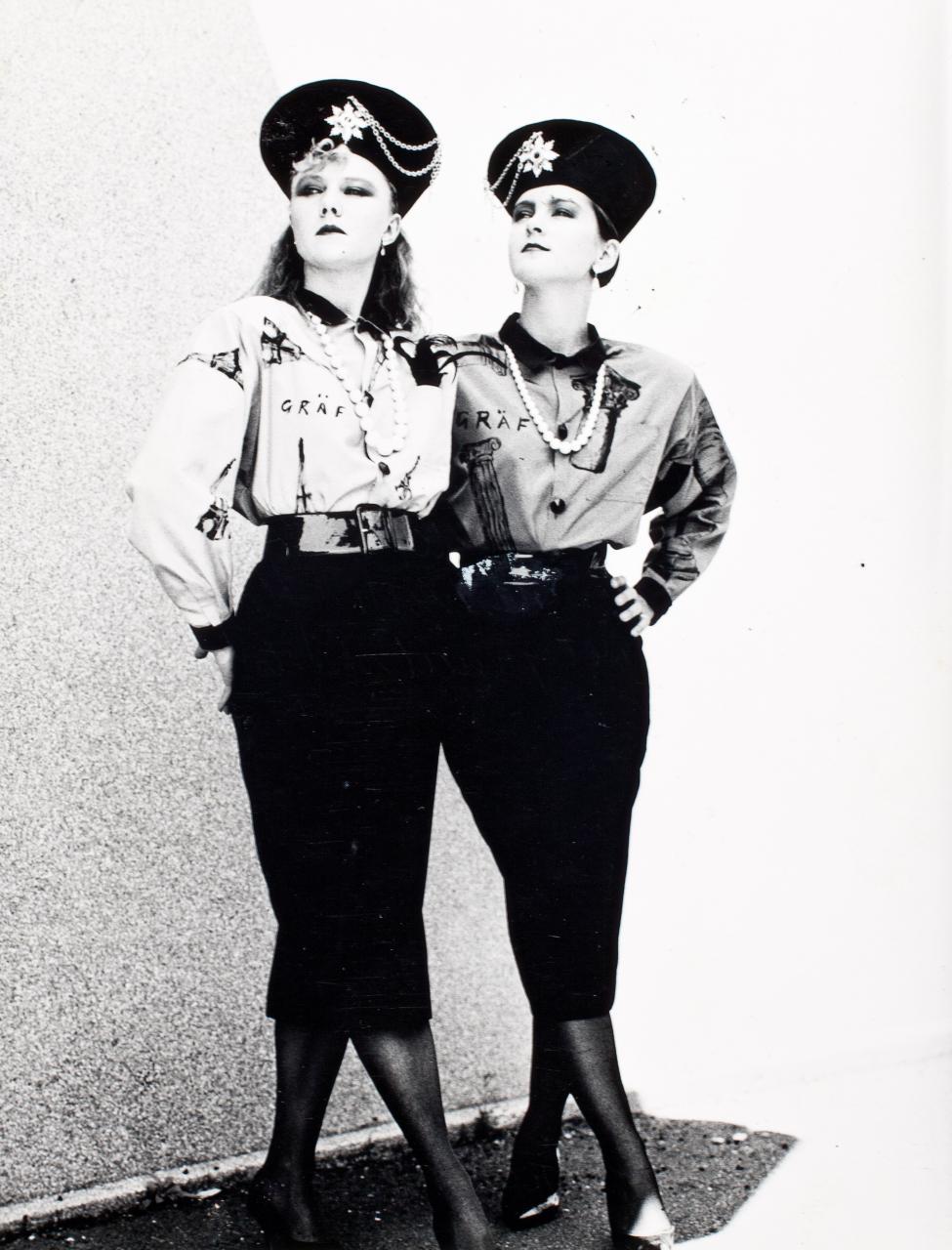 Durham, Buckingham and Pearce all came from different backgrounds and had specific roles within the FDC. Durham was a jewellery designer who was very connected to the art and design community. “For me, fashion was a fantastic remedy to the art school training I’d had, which was full of holes philosophically”, she recalls. Buckingham had been involved in a film company called The Rich Boys and had been behind the Fashion 83 documentary. He contributed to the business aspect of the FDC. Robert Pearce, who was slightly older than the two and died in 1989, was “a proper baby-boomer who grew up believing youth could change the world”, as Buckingham explains. Pearce had a graphic design background and created pamphlets, sets and other visual elements for the parades and events. He had gained a following for his radio program En Masse Fashion, where he’d read articles from copies of, then-rare, international magazines such as i-D, The Face and Interview. Culturally, the FDC had emerged from the local punk scene, which had been an outlet for disillusioned youth who were bored with Melbourne and longing for hotspots like those in London and New York.