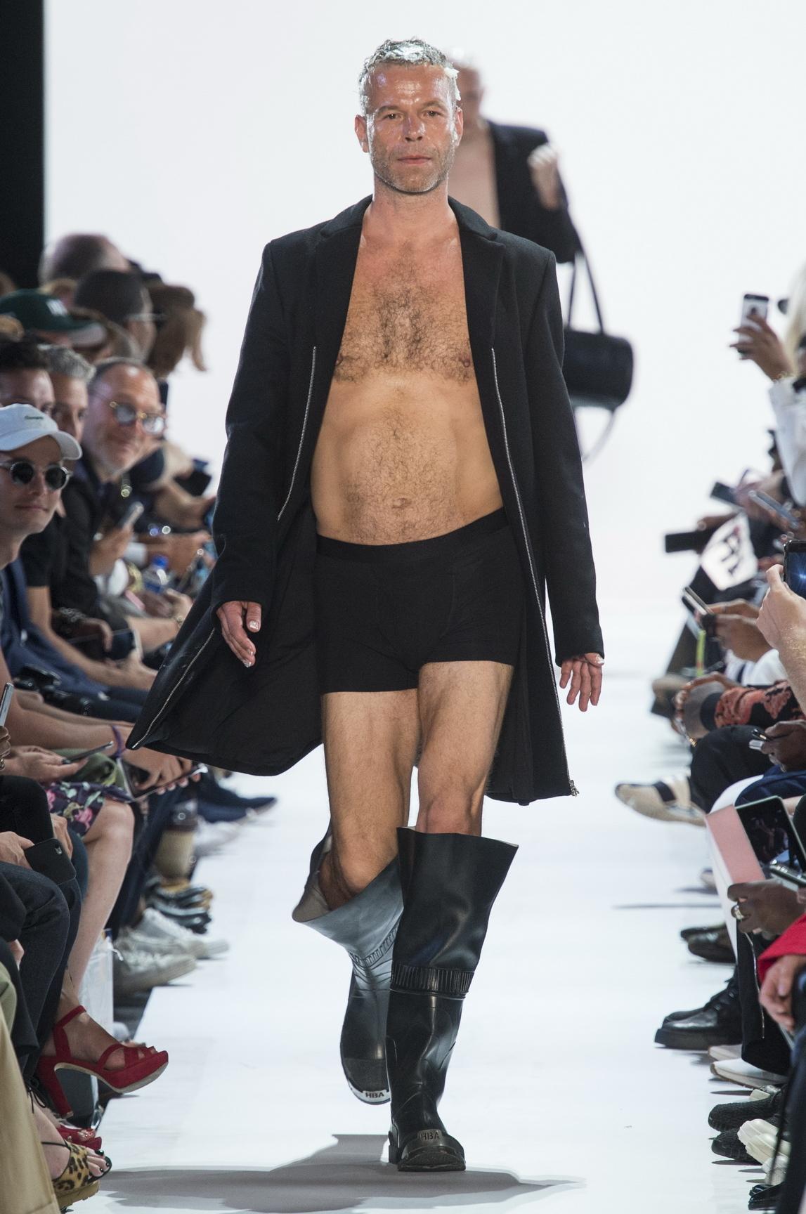 Over the past year of collections, the bookish glitter apologists of Michele’s vision have been spiraling further into manic territory. As have Vetements’s characters, neckless in their tight, velour hoodies, and their thigh-high boots that crept further up the leg each season until finally hitting absurdity (and the ribs). The same with Galliano’s surrealist designs this year at Maison Margiela, and Hedi’s final Saint Laurent collection for fall/winter 16. Clothes are blooming into beautiful monstrosities of their past selves, overgrowing the human form, and, in many cases, outgrowing the usual requisite for simplistic sexual pageantry. Are they instead more in line with our authentic private lives, as opposed to our public selves?