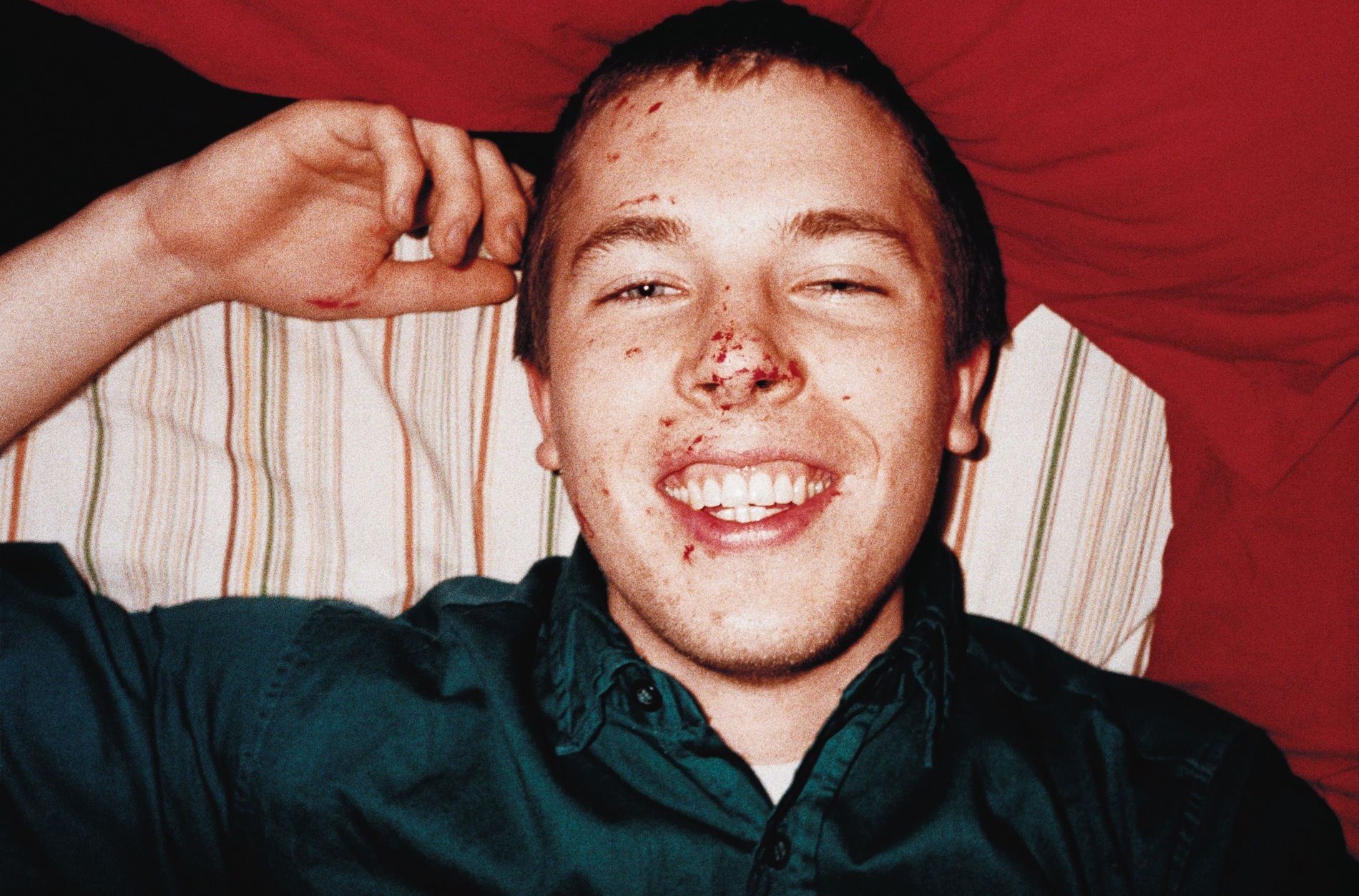 “I guess because of the gay thing we thought, ‘If anybody is going to give us a problem about being gay we’re going to kick their asses.’ There were some guidos out on the street one night that were saying homophobic comments so the blood on my face is from head butting somebody. It’s somebody else’s blood. Coming home we were laughing our asses off just because I don’t think the people expected some gay kids to kick their asses.”