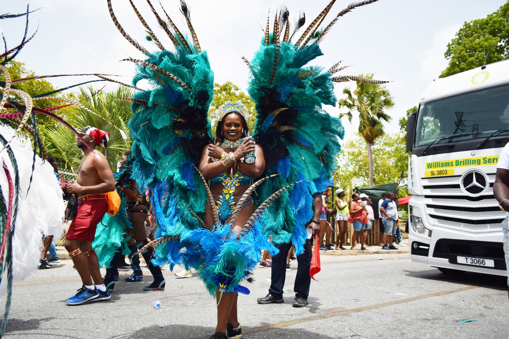 Throughout the years, as Barbados’ carnival has evolved, so have the costumes. Historically, African captives used to wear masks and feathered headdresses, shredded strips of cloth, and painted their faces and bodies in a medley of hues, as an outward expression of pride for their ancestral heritage. (A part of that tradition has carried over today, with people carrying their country’s flags as accessories.) But as conventions changed, participants’ way of dress did too. At one point, Crop Over was filled with people wearing simple T-shirts and pants. However, with time, costume designers starting getting more adventurous, and carnival costumes became increasingly risqué and ostentatious.