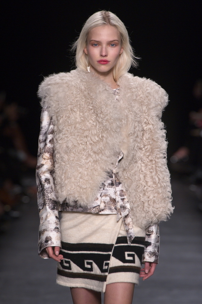 Isabel Marant’s cult following includes the ever-growing number of devoted supermodels walking in her shows. Girls flocking to walk for her, despite the no make-up policy and her unfortunate positioning directly after Dior (meaning the majority of big names have to run between the two shows), is true testament to her appeal. “I’ve always had amazing girls,” Marant confirms. “It makes me very happy because I really feel like I’ve reached a certain point of recognition in the fashion world and now the agencies are following me and giving me the girls I really want.” The girls Marant handpicks are vital to the portrayal of her brand and she has more than a few faves. “You always find new girls that are wonderful, but there are always the main characters you really want to have in your show, who are really representative of the type of girls you would like to wear your clothes.”