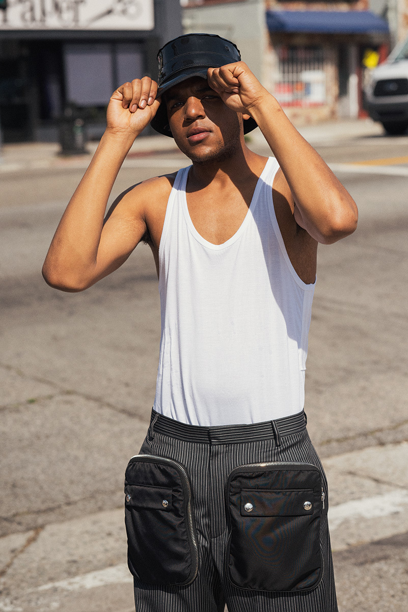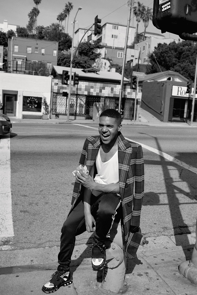 The quiet might have to do with the time we talk. It’s about 10am in Los Angeles when CJ, who’s lived on the West Coast since childhood, gets on the phone to i-D. He puts his lack of bravado down to how his mother raised him, even though there’s his breakthrough acting role to be boastful about.