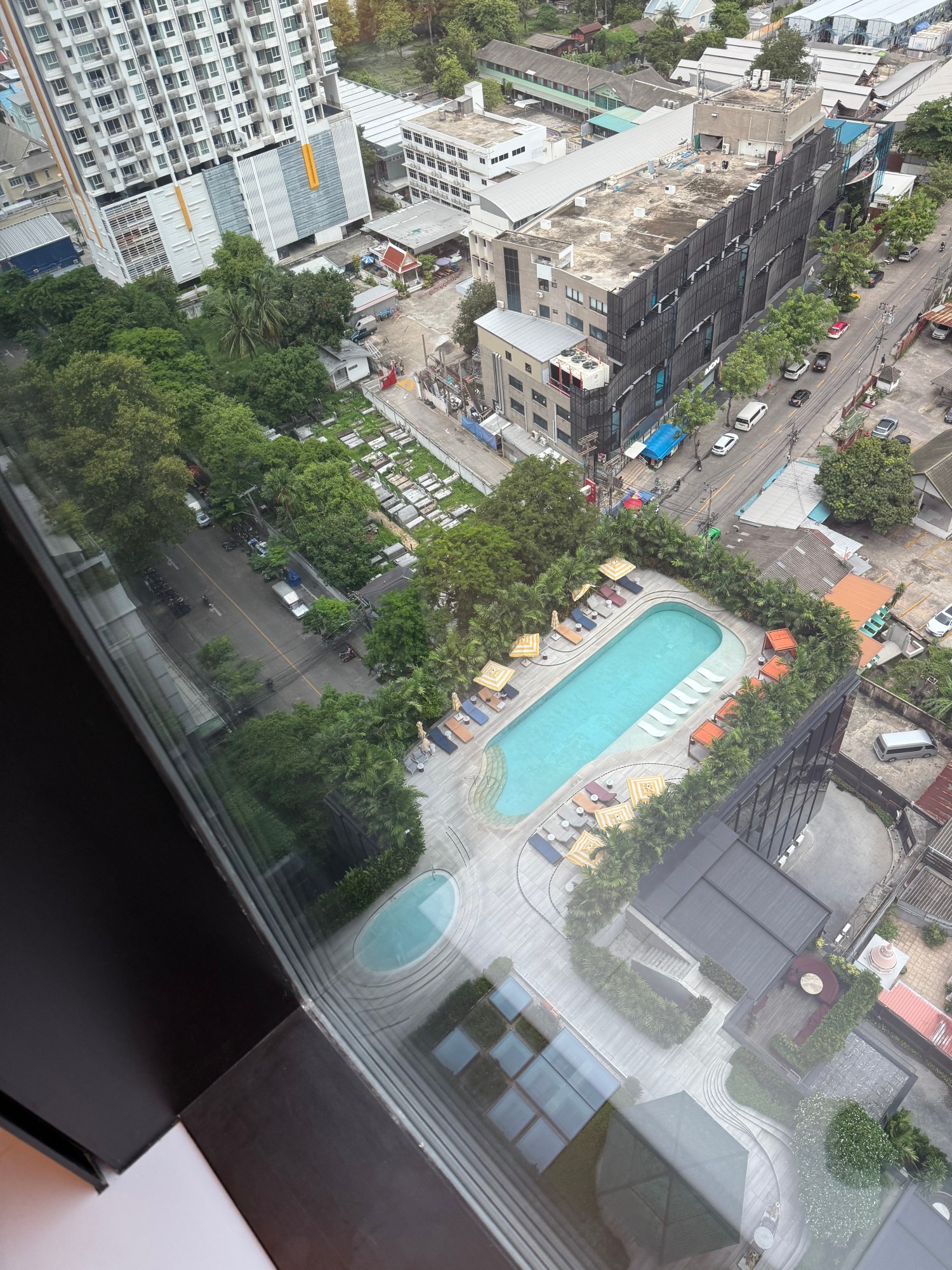 I slept like a baby in blackout blinds and woke up to a view that almost made me forgive Bangkok for its heat. Almost. I missed the breakfast cutoff by 12 minutes (tragic, I know), and The Standard (ever the stickler for structure) would not budge. So, I accepted my punishment and went for a swim instead. The pool was as glossy as a music video and came with iced Americanos and, for reasons I won’t question, Coke Zero on the side.
