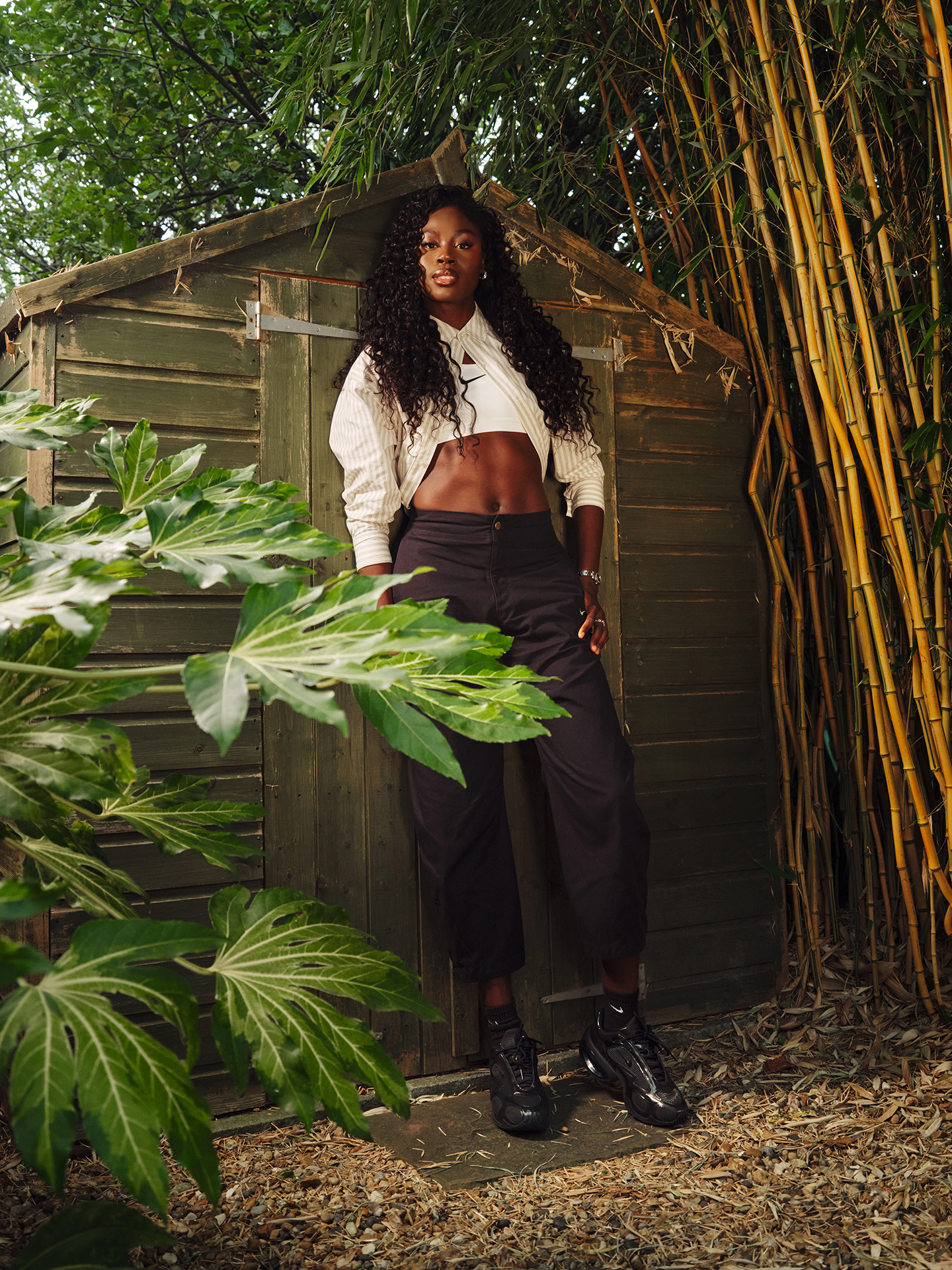 Being a leader in your space isn’t easy – especially as a woman. Alongside Nike, we brought together four women from different industries – film, fashion, sport and music – where they are each leaders, to have a candid conversation about how they are actively breaking boundaries, and ‘Setting the Pace’ in their respective industries. These women aren’t following trends or waiting for them – they’re out in front, defining the tempo and paving the way. Like a frontrunner in a race, they dictate the rhythm, but in our conversation, it is less about the speed and success, and more about taking risks, community, and how they got to where they are today – each of them invited because of their own unique experiences. We met Rhasidat, Eva, Fenn and Nia in a cozy living room in South London.