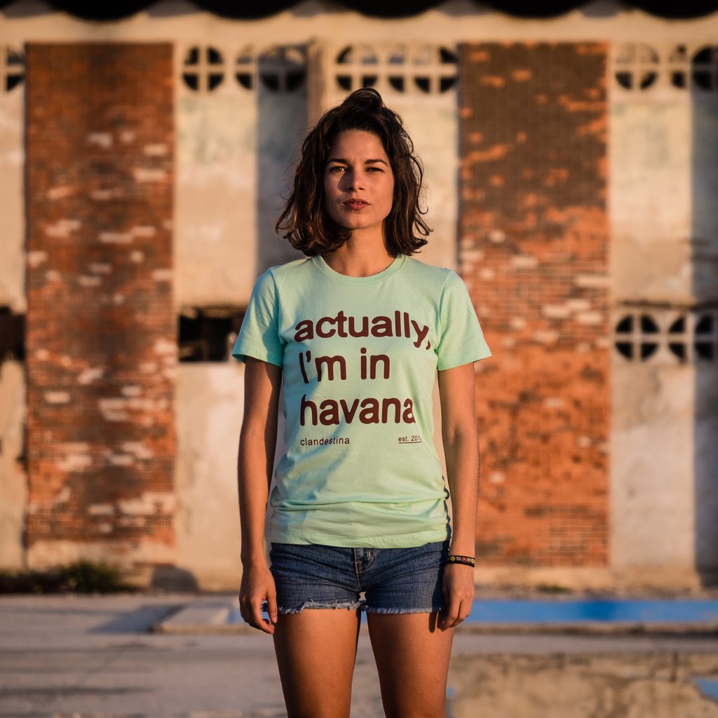 Aside from being Cuba’s first independent fashion label, Clandestina is also the first Cuban brand to have an online store and sell internationally. Due to the strict and prohibitive trade regulations between Cuba and the United States, Idania and Leire once again had to use their impressive skills of innovation. While all Clandestina products sold in the store are made in Cuba and printed in store, the t-shirts sold in the US are all sourced and made in America through a supplier in South Carolina. It was another huge logistical challenge with no precedent to draw inspiration from, but last year the pair opened a company in the US (made possible due to Leire’s Spanish citizenship), have entrusted the printing and order fulfilment to their US supplier, and manage all the back-end operations and customer service from the shop in Havana.
