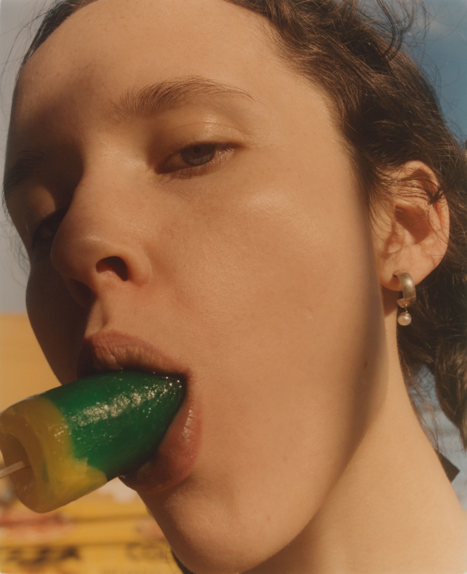 Parisian photographer Maxime Imbert’s lustrous portraits of women, which he describes as “desperately romantic,” are the result of his own curiosity. “I often see myself as those boys in The Virgin Suicides,” Imbert confesses. “In love with the mysterious Lisbon daughters and daydreaming about what they might do together when they’re home alone.” From this imagined perspective, the watchful gaze of an infatuated adolescent, the women in his work become enchanting enigmas. The divide between innocence and the erotic becomes a question mark. In one image, which recalls the opening scene of The Virgin Suicides, a young woman in braided pigtails and a sheer tank top cheeks a tricolored popsicle on a shady, suburban street. The photo asks: Is she coy or cunning? “I would say that the answer is in the eye of the viewer,” Imbert imparts in the following interview, in which he also discusses nostalgia and the central themes in his work.