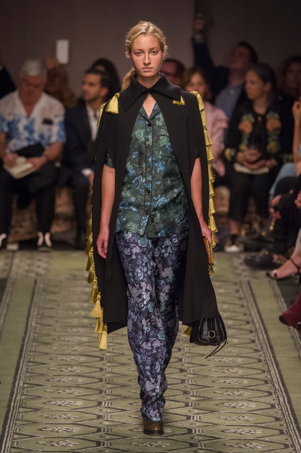 Traveling through time is felt nowhere stronger than in fashion where you’re faced with new creation every six months at the shows. In with the new, out with the old — well, sort of. Monday’s Burberry Prorsum show at London Fashion Week marked the powerhouse’s transition into see-now-buy-now and the merger of its women’s and men’s shows into one big season-less offering. It was Burberry’s giant leap into the future as a commerce frontrunner for an industry, which could soon adopt the same format across the board, but Christopher Bailey wasn’t about to give in to soulless consumerism. Brilliantly, his foray into the future — presented in the salons of Makers House in Covent Garden, miles away from Burberry’s Kensington Palace Garden mega tents of yesteryear — looked back in order to look forward. Based on Virginia Woolf’s Orlando, the book about a man who morphs into a woman and lives for centuries, Bailey’s collection travelled through British history, with all the ruffle collars and floral tapestries and cavalry uniforms a boy (or a girl) could wish for. Accompanied by a 21-piece orchestra, a pianist and vocalists performing an epic score entitled “Reliquary” composed especially for the show by Ilan Eshkeri, it was an overwhelmingly breathtaking experience — a bit like the first time you watch Stanley Kubrick’s Barry Lyndon or Peter Duffell’s King of the Wind, you couldn’t not surrender to the sheer sensory overload of all that history and grandeur and emotion. It was Bailey’s best collection in years, perhaps ever. If this is what see-you-buy-now looks like, fashion will be okay.