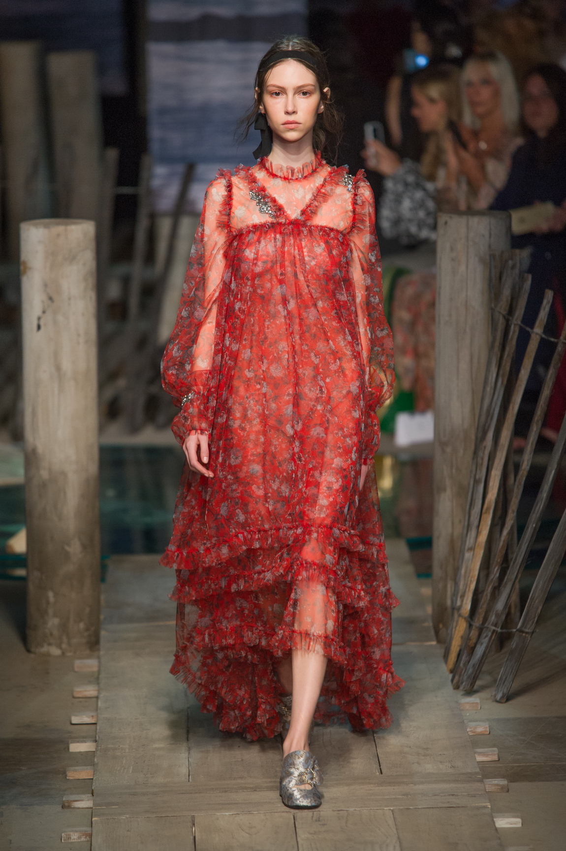 Erdem Moralioglu is fashion’s Orlando, only without the sex change. His collections travel through history, retelling stories otherwise forgotten and feeding his formidable narrative in an ongoing story, which, once completed many decades from now, will become one of the great tales of our time — as told through fashion. It doesn’t get more future-forward than that, but like Bailey, Erdem expresses himself best through the past. This season he had become obsessed with last year’s shipwreck discovery of a gown that belonged to Jean Ker, Countess of Roxburghe, who accompanied the daughter of Charles I to the Netherlands in 1642 to join her new husband, William II, the Prince of Orange, on a fleet of twelve ships, part of which sank. All this history, and Erdem hadn’t even begun. He related that story to another war era, the 1930s, imagining an army of women landing on the beach of Deauville about to go into battle. “I like the idea that they survived and they arrived. 300 years later her army of women landed,” Erdem said, referring to the Countess and her fellow ladies of the court. “When you think about the 1650s it kind of equals the 1930s. They were about to enter a very dark phase.” If it sounds mad, it definitely was — a lot like the captivating oddity of Orlando, come to think of it, and it wouldn’t be the first time someone compared Erdem to Virginia Woolf. He staged the whole thing in a boardwalk set with the crushing of waves sounding in the background, and the clothes that landed on his beach were pure magic: “nipped-in jacket with these Deauville-y cropped trousers and odd sun hats,” as he described them.