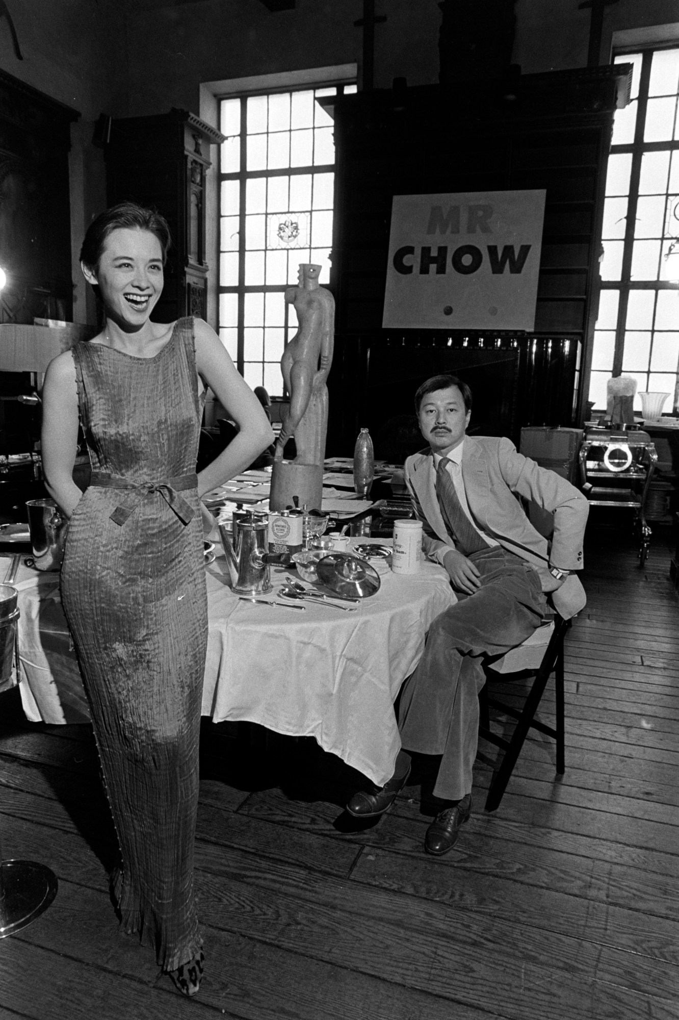 In 1973, Tina married Michael Chow, restaurateur and founder of the iconic Chinese chain Mr. Chow. The duo had been introduced by fashion designer Zandra Rhodes two years prior and, together, the couple became celebrities in the international fashion and art scenes. Throughout the late 1970s, Tina played hostess at Mr. Chow’s New York location to a menagerie of friends, including Andy Warhol, Jean-Michel Basquiat, and Jerry Hall. Here, the duo pose together at Mr. Chow’s Beverly Hills outpost, Tina wearing another of her Fortuny gowns. Note the leopard-print Manolos peeking out the bottom. Chic!