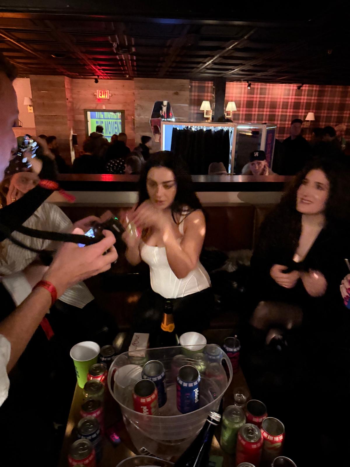 I met Charli on New Year’s Eve 2024 when we were staying at the same hotel. I didn’t have a lighter, and I saw some smoke billowing up in the air from a table. I went over and asked this guy for a lighter, and when I turned around, there was Charli. I ended up celebrating with them the whole night. Although Charli rolls with a big team, she’s so personable. There’s a whole squad of people who could potentially be very intimidating, but they’re all so welcoming.