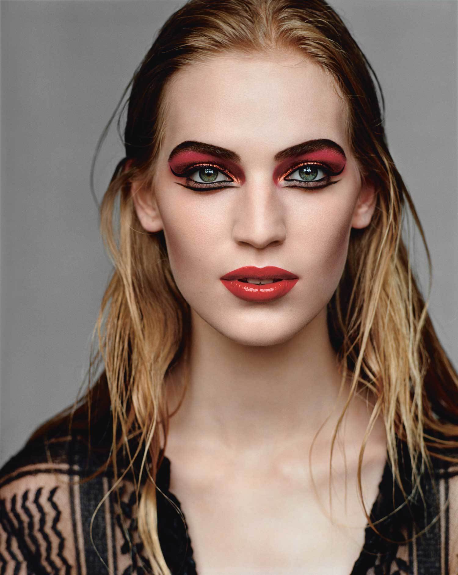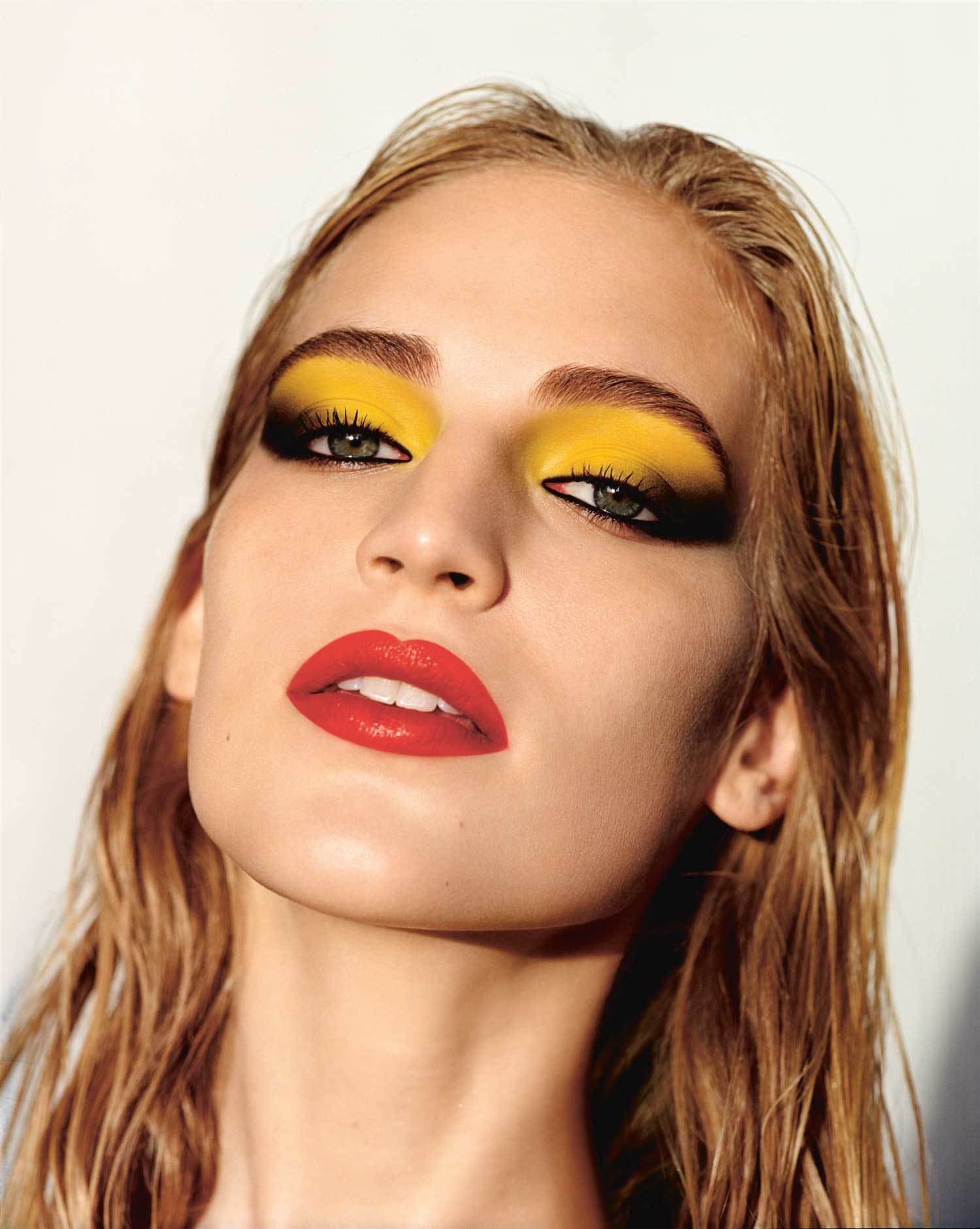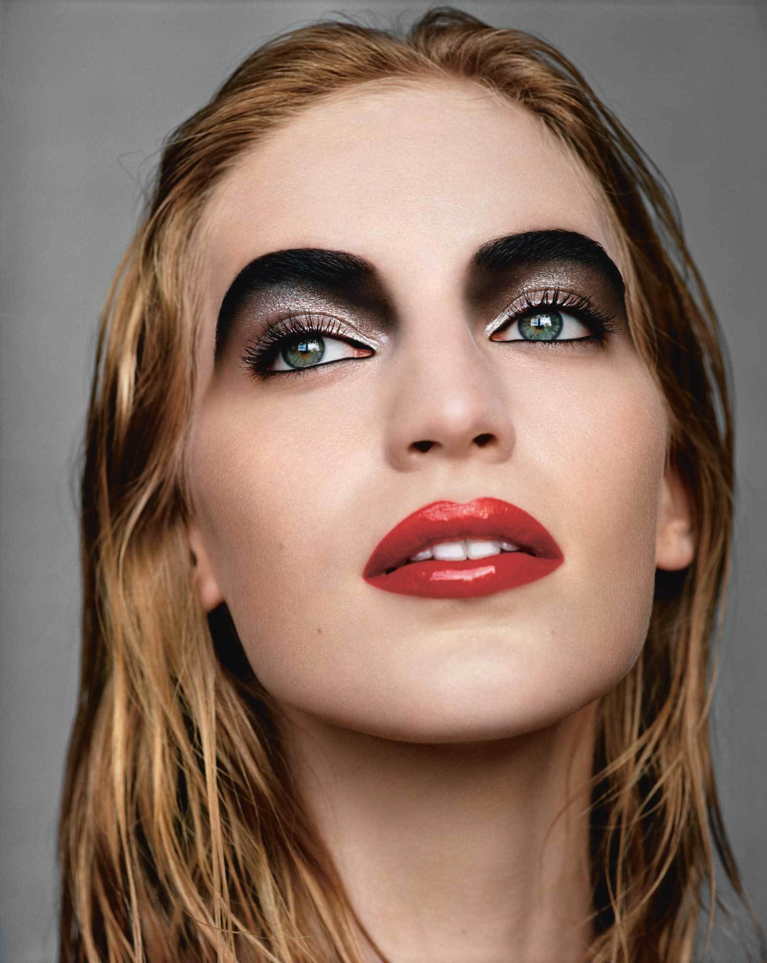 In these body-centric modern times, it’s worth reminding ourselves what was always the focal point of great, influential beauty: the face. It’s how we communicate ourselves and our first chance to make an impression. Make-up artist Lucia Pica is part of the relatively small group of people responsible for the changing faces of our time, whose ever-evolving face art – because that’s literally what it is – sets the agenda for the way in which we shape and mould our faces to look modern, make certain impressions, and portray our personalities “I like to think that when I work there is a certain harmony in my use of colours and textures that can be translated into a woman’s everyday life, that something I do might inspire someone to try something new and experiment with products in a different way to announce their beauty,” Lucia says, on the eve of her shoot for i-D. “Fashion magazines especially offer a constant source of inspiration, and I like the idea of a woman seeing a look that I have created and it giving her the confidence to try it out herself. I think it’s the best way to discover new things, like trying out a bolder lip colour. It can make you feel empowered.” The power of the face is illustrated to perfection in Lucia’s most memorable work, which includes images such as Jourdan Dunn’s i-D cover, also photographed by Alasdair McLellan, from Winter 2011. You know the one: Jourdan stripped back in a black roll neck, shot on a pink backdrop with a matching pink eye shadow, a dramatically lined eye, matte red lips and yellow nail varnish. Pica was behind Eliza Cummings’ i-D beauty story from Spring 2013: a series of graphic eyes on a blood red backdrop. “They all really portray my woman,” Lucia says. “Where strong meets sophisticated with a feminine feel.”