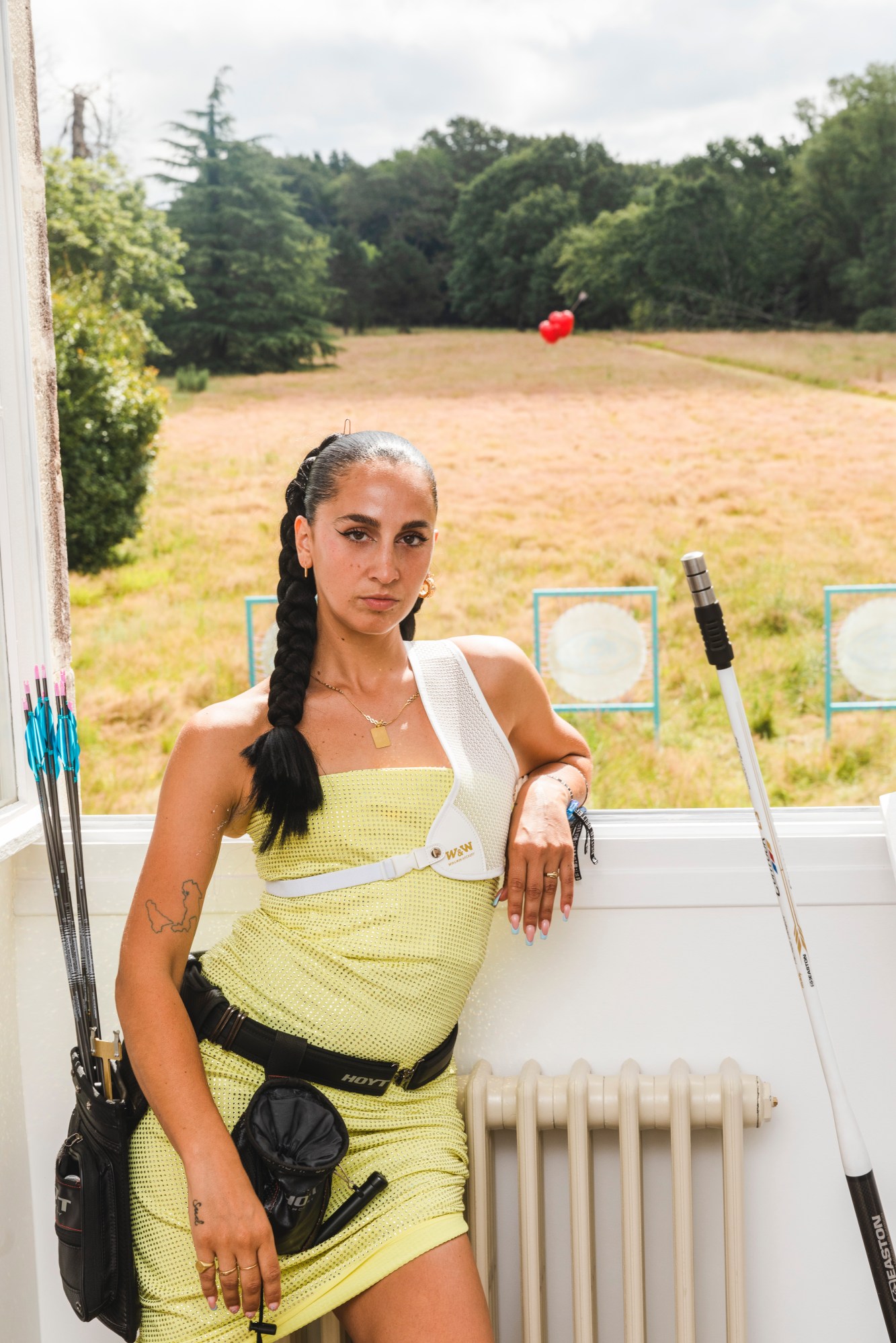 Can you think of a sport chicer than archery? No? Well, neither can we. Requiring strength, focus, balance and poise, it wouldn’t be unfair to think of it as the playing-field equivalent to modelling. In fact, last night, when we watched Naples-born, London-based artist Sagg Napoli’s archery performance at the opening of Champ Lacombe gallery in Biarritz, you’d have been forgiven for thinking it was the set-up for a shoot destined for our very own pages – no less due to the fact that the artist was decked out in a full look from Matthieu Blazy’s debut collection for Bottega Veneta. Following her spellbinding turn shooting at sculptures she’d created in response to the works of Gaetano Pesce – the subject of Champ Lacombe’s inaugural exhibition – we were so enraptured that we decided to sit down with Sagg and get to the bottom of what, exactly, makes archery such a stylish sport.