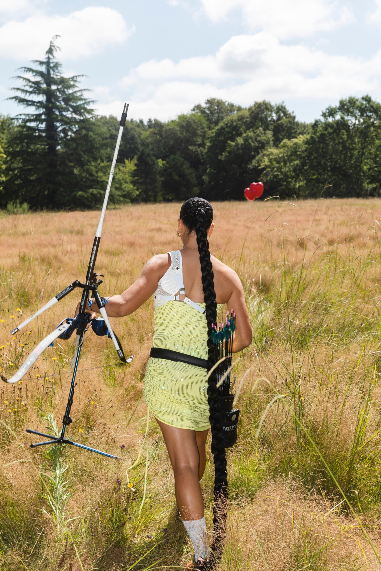 Wearing Bottega Veneta was perfect for the occasion. I wanted to move away from my usual archery gear, but also were something that I could comfortably shoot in, and feel iconic at the same time. I really like the idea of creating situations where a sport that’s as niche as archery can suddenly feel spectacular and seductive.