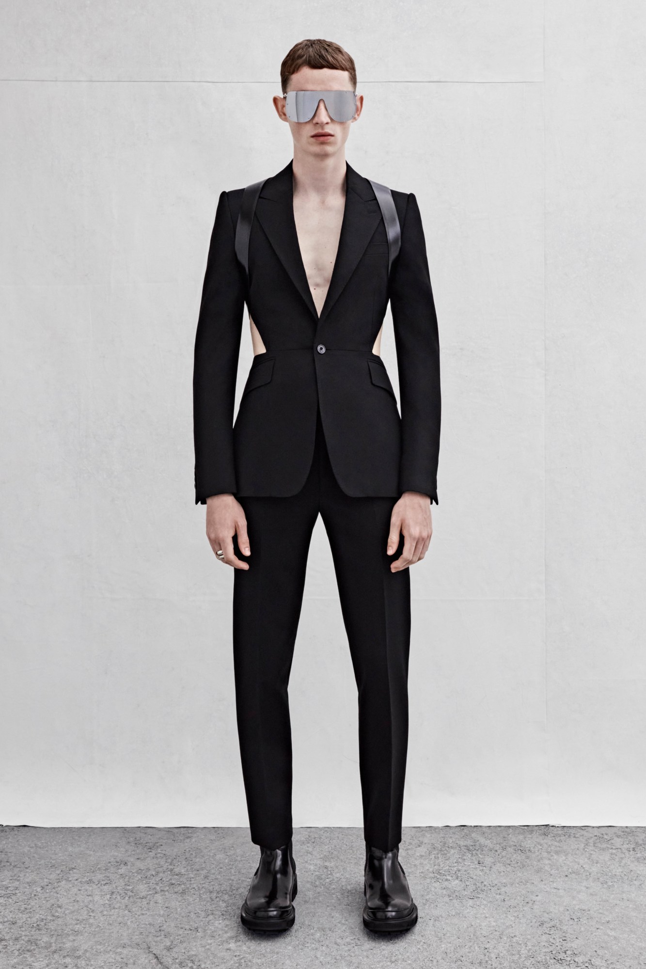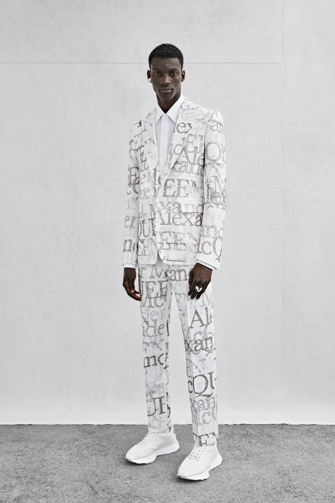 When it’s tricky to find inspiration here on earth, look to the skies. Gauging Alexander McQueen’s SS23 menswear collection, that’s exactly what Sarah Burton did. Granted, it’s not the first time that the house’s creative director has channelled the heavens in her work – the savvy among you will recall Sarah’s SS22 womenswear collection, which echoes the tones of the fickle skies above McQueen’s London studio. This time around, though, the tone struck is an altogether duskier one. The spirit of the evening makes itself felt, first and foremost, in the sharp, tailored silhouettes that set the baseline – think: slim black wool double-breasted jackets with satin peak lapels; roomy cloud grey suits; asymmetric cape coats that convey a sense of operatic glamour. Oblique-baring cutouts, harness details and straight-leg leather trousers bring a more sensual – raunchy at times, even – timbre into the mix, while astral embroideries, grainily painted leathers and glittery logo prints channel the glitz of a twinkling night sky. A collection that you can be damn well sure we’ll be wishing on a star for come next spring. MS