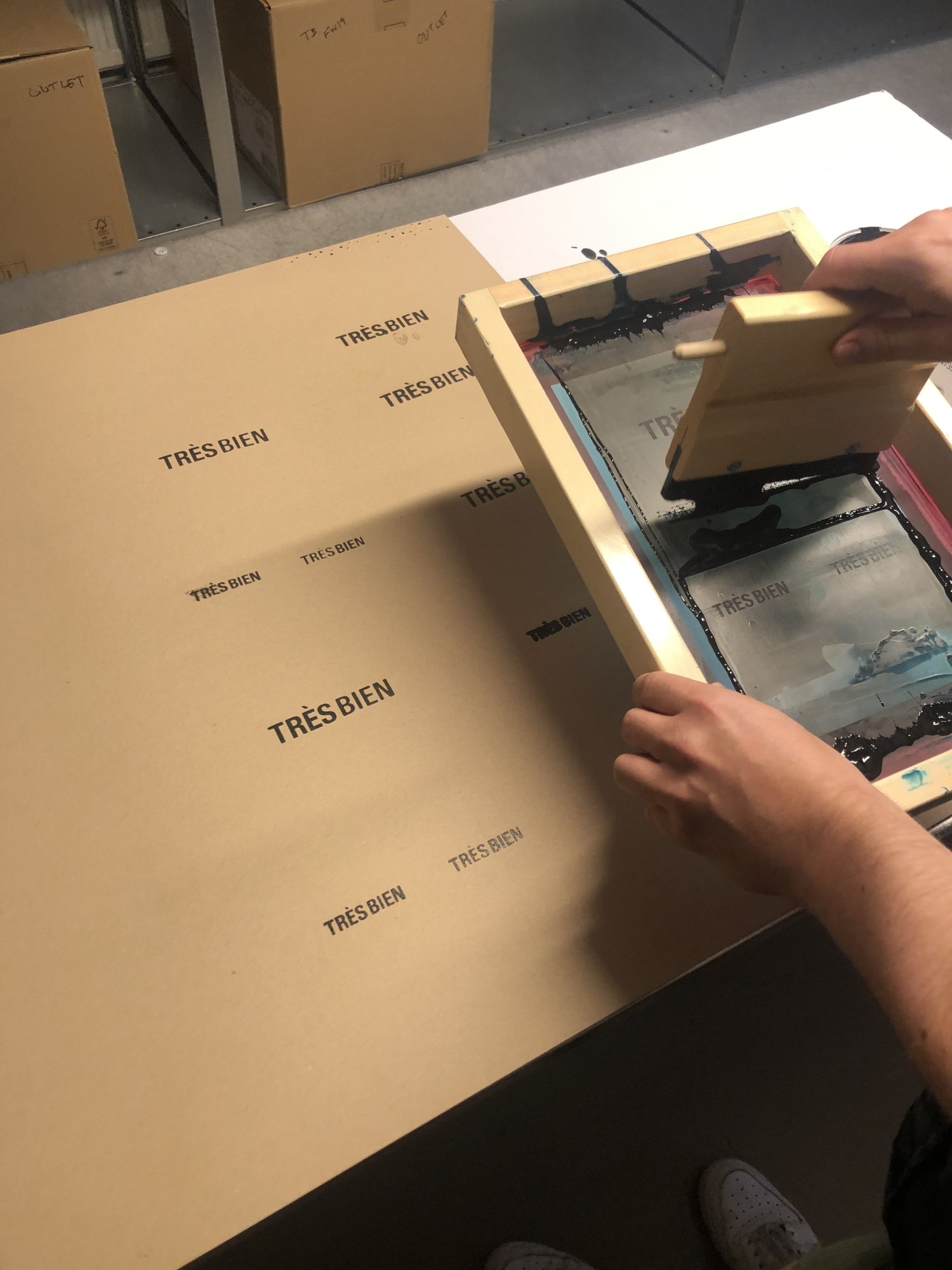 Every element of the collection’s production was carried out by people within or connected to the company, with Très Bien avoiding the use of industrial machinery. The brand founder’s mother-in-law hand sewed the clothes; the labels for delivery boxes were hand-printed at home by a member of their online product team; even the campaign model used to worked in their logistics team. A full-on DIY project… what’s not to love about that?!